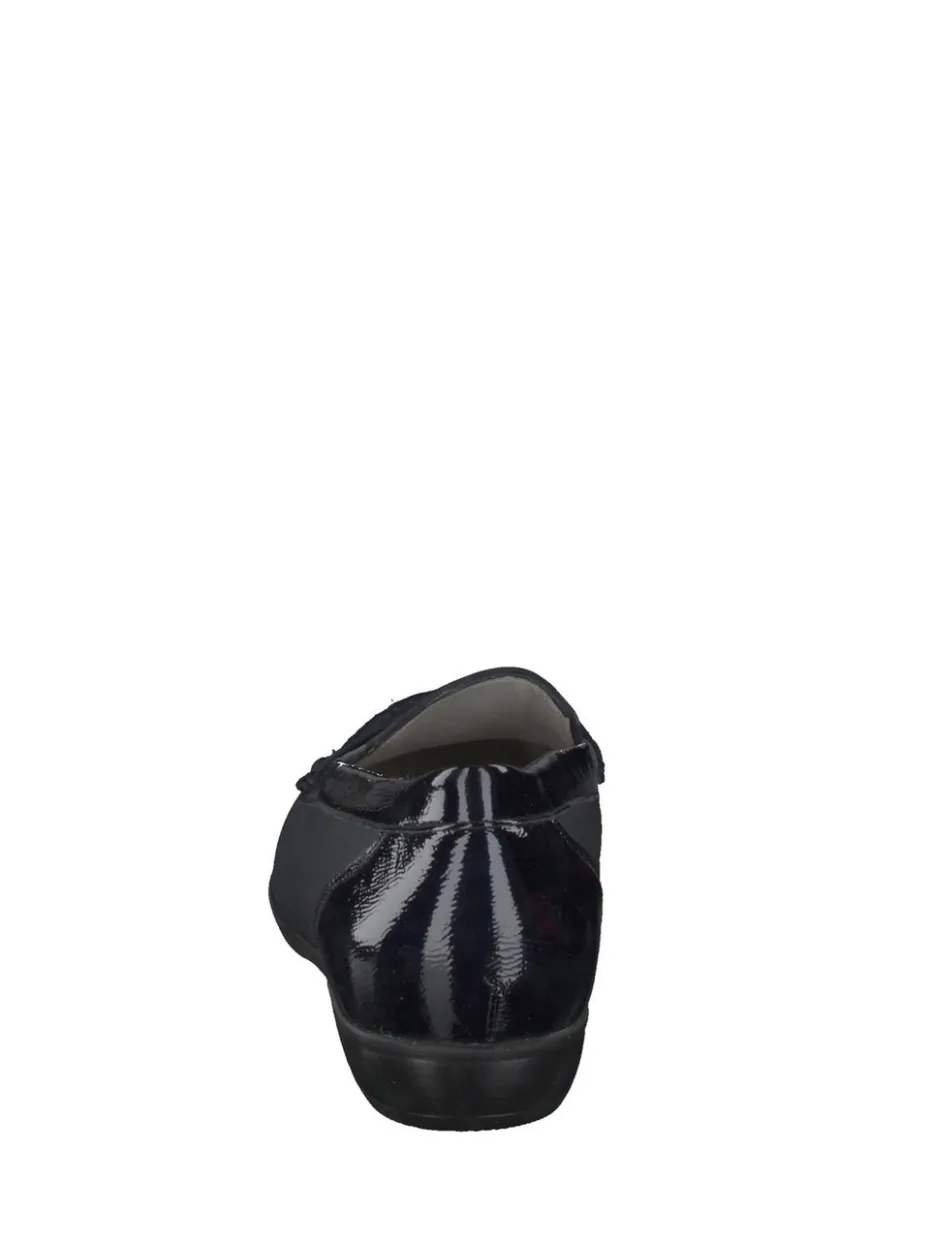 Eleganz trifft Komfort – neu interpretiert.Waldläufer vereint in diesem Damen-Loafer erstklassige Materialien und durchdachte Funktion. Für ganztägige Einsätze im Büro oder entspannt durch den Tag: Der Slipper überzeugt durch hochwertiges Kalbleder, ergänzt mit glänzenden Lackleder-Details an Ferse und Lasche. Die dunkelblaue, unifarbene Gestaltung und die klassische Silhouette betonen seine dezente Ästhetik im Sinne von „Quiet Luxury“. Die flexible Gummisohle ist leicht profiliert und bietet Trittsicherheit, während die komfortable Weite H und das herausnehmbare Fußbett Komfort und Einlagenfreundlichkeit ermöglichen. Ideal kombinierbar mit Marinetönen oder neutraler Businessmode. Stilvolle Zurückhaltung mit alltagstauglichem Anspruch – typisch Waldläufer.