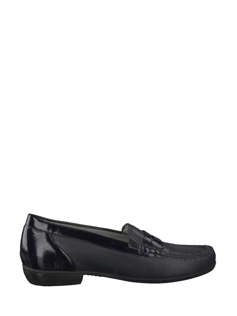 Mit edler Lederkombination, angenehmer Weite H und funktionalem Komfort überzeugt dieser dunkelblaue Loafer im zeitlosen Design – ideal für Business und Alltag.