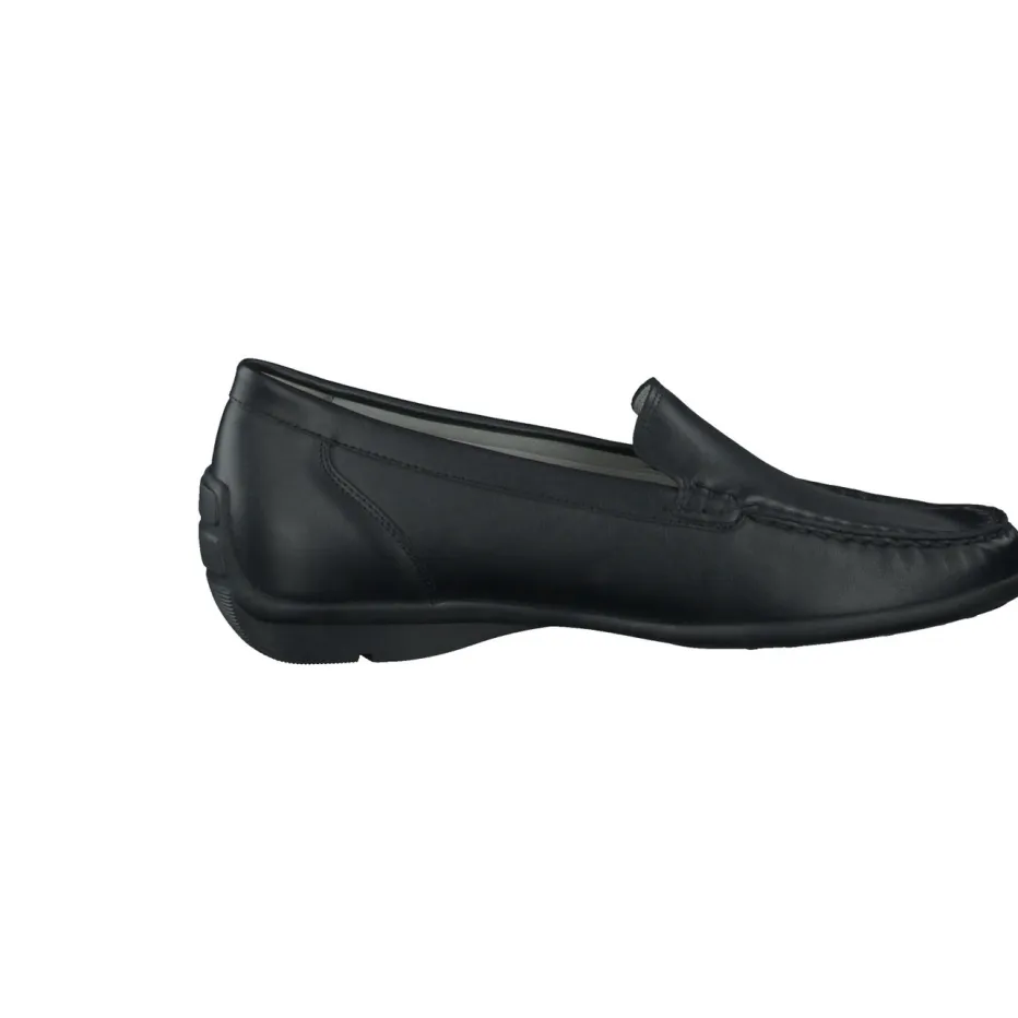 Schwarz, schlicht – und herrlich komfortabel.Die Marke Waldläufer präsentiert mit diesem Damen-Loafer ein Modell aus der Linie Harriet. Der Schuh vereint klassische Mokassinelemente mit moderner Ergonomie. Feines Kalbleder mit matter Oberfläche trifft auf ein klares Schwarz und tonige Nähte. Die flache Silhouette mit gepolsterter Ferse sorgt gemeinsam mit einem herausnehmbaren Fußbett und der flexiblen Gummisohle für ein komfortables Lauferlebnis. Das dezente Logo auf der Sohle und das zurückhaltende Design fügen sich in den Trend „Quiet Luxury“ ein. Besonders harmonisch zu schmal geschnittenen Hosen oder einem fließenden Midirock. Verlässlicher Alltagsbegleiter mit Komfortfokus – made by Waldläufer.