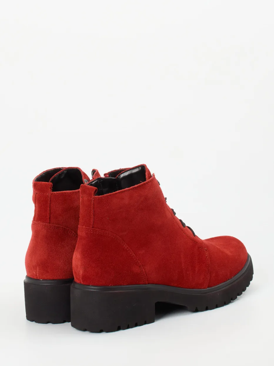 Ein Must-have für kühle Übergangsmonate.Waldläufer präsentiert in der Kategorie Stiefeletten robuste Schnürboots im angesagten Utility-Stil. Für nasses Herbstwetter oder lange Alltagswege bieten diese Damen-Stiefeletten zuverlässigen Komfort. Aus rotem, samtig angeschliffenem Veloursleder gefertigt, harmonieren sie mit schwarzer Schnürung und mattem Finish. Die knöchelhohe Silhouette mit rundem Leisten und praktischer Kombination aus Reißverschluss und Schnürung erlaubt bequemes Anziehen und individuelle Passform. Die markant profilierte Gummisohle in Blockoptik verleiht sicheren Halt – auch bei Outdoor-Aktivitäten. Starke Farbeffekte und chunky Design machen sie zum Streetwear-Favoriten im Winter. Ein stilvoller Komfortschuh von Waldläufer – modisch, funktional und trendorientiert.