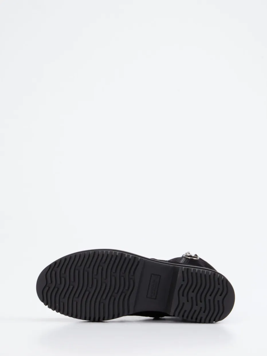 Diese schwarze Schnürstiefelette kombiniert samtig angeschliffenes Nubukleder mit alltagstauglichem Komfort und einem urbanen Design mit Utility-Charakter.