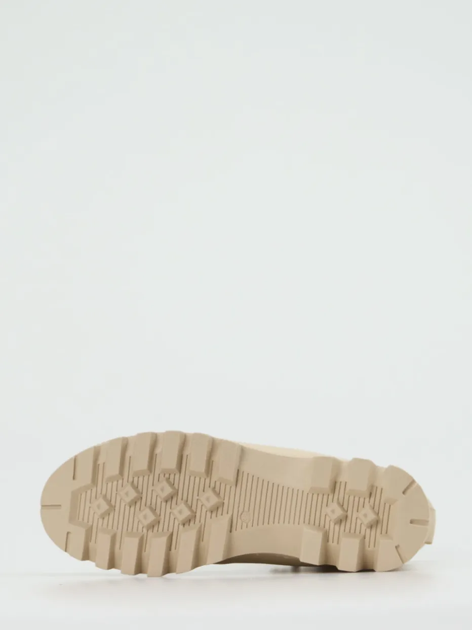 Die deutsche Marke Werner präsentiert klassische Schnürboots für Damen im beige genarbten Kalbleder.