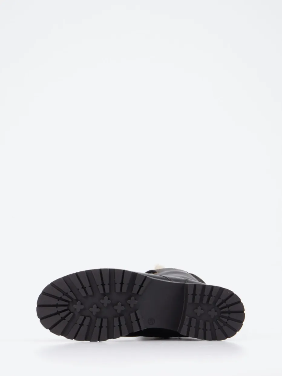 Schwarze Schnürboots von Werner überzeugen mit edlem Kalbleder, warmem Lammfellfutter und dezenter Utility-Ästhetik für stilvolle Winterlooks.
