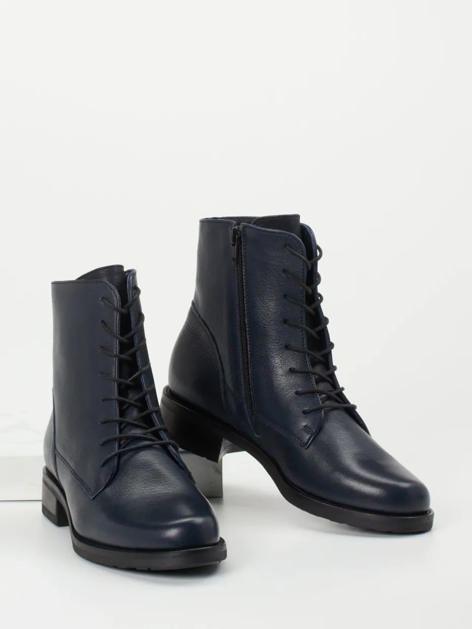 Ob beim Spaziergang durch die Stadt oder im Büro – das dunkelblaue Kalbleder mit natürlicher Narbung kombiniert mit dezenten Nähten und einer symmetrischen Schnürung überzeugt durch zeitlose Optik. Die rutschhemmende Gummisohle und der innenliegende Reißverschluss bieten Funktionalität ohne Stilbruch. Ihre knöchelhohe Form und klar strukturierte Silhouette passen hervorragend zu geradlinigen Herbstlooks. Besonders wirkungsvoll in Kombination mit grauen Wollstoffen oder einer passenden Lederhandtasche.