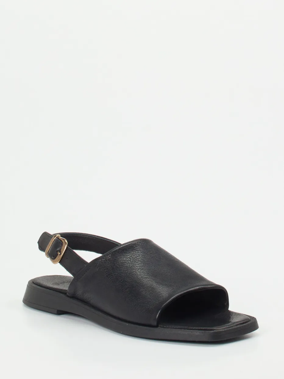 Die Marke Werner präsentiert eine elegante Slingback-Sandale für Damen, gefertigt aus fein genarbtem Kalbleder in klassischem Schwarz.
