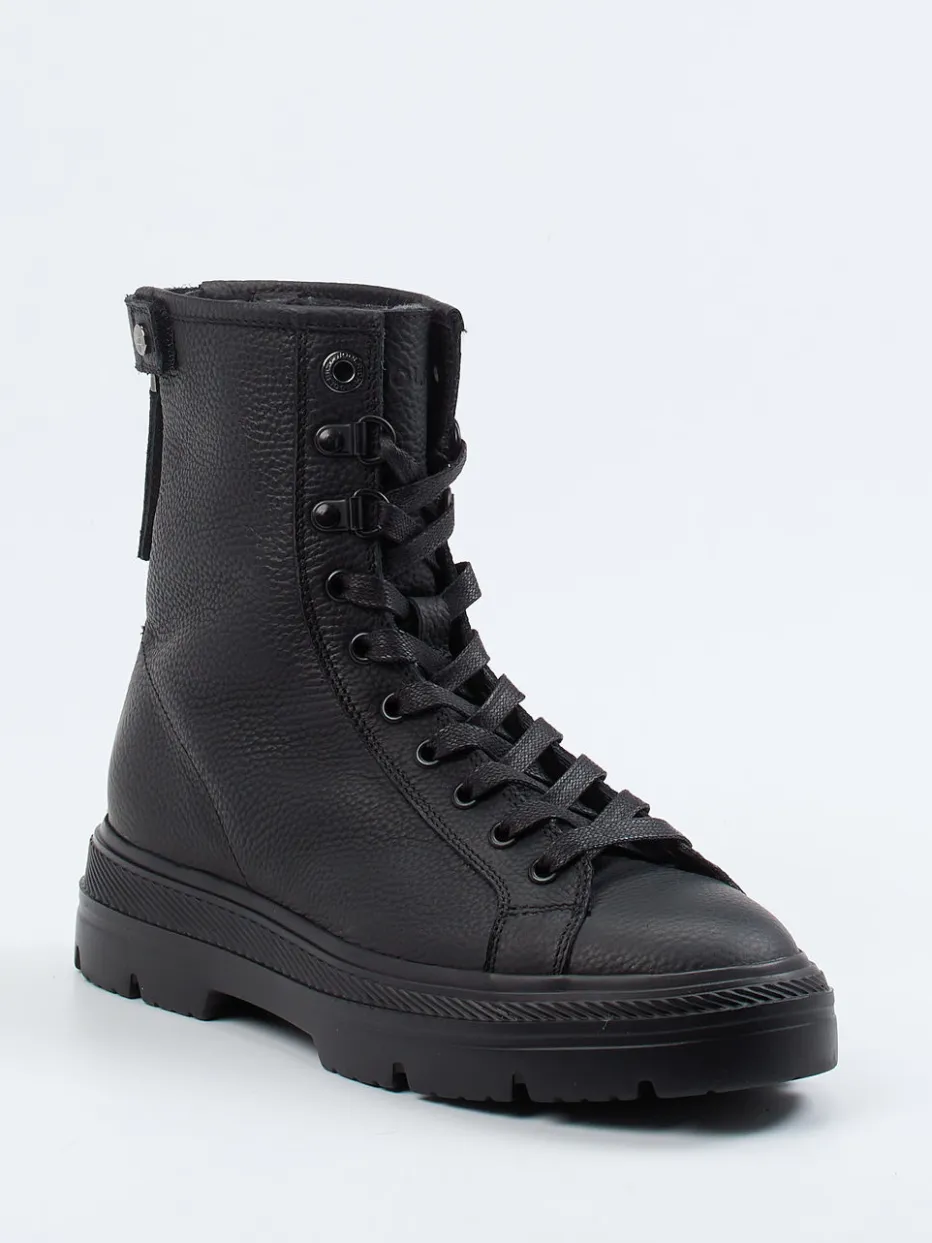 Robust trifft auf Funktionalität.Die Marke Woolrich präsentiert mit diesen Schnürboots eine stilvolle wie funktionale Variante für kalte Tage. In Alltagssituationen mit unbeständigem Wetter sorgen das genarbte Kalbleder und das wärmende Lammfellfutter für Komfort und Haltbarkeit. Die hochgeschlossene Silhouette in schwarzem Leder trifft auf eine griffige Vibram-Gummisohle – ideal für rutschfeste Schritte im urbanen Winter. Details wie schwarze Metallösen, eine Ton-in-Ton-Schnürung sowie ein Reißverschluss an der Rückseite unterstreichen die markante Streetwear-inspirierte Linienführung. Die Kombination aus Utility-Design und Quiet-Luxury-Ausstrahlung macht diese Boots vielseitig tragbar – von Parka bis Oversize-Mantel. Ein Outdoor-inspirierter Stil mit Premium-Anspruch von Woolrich.