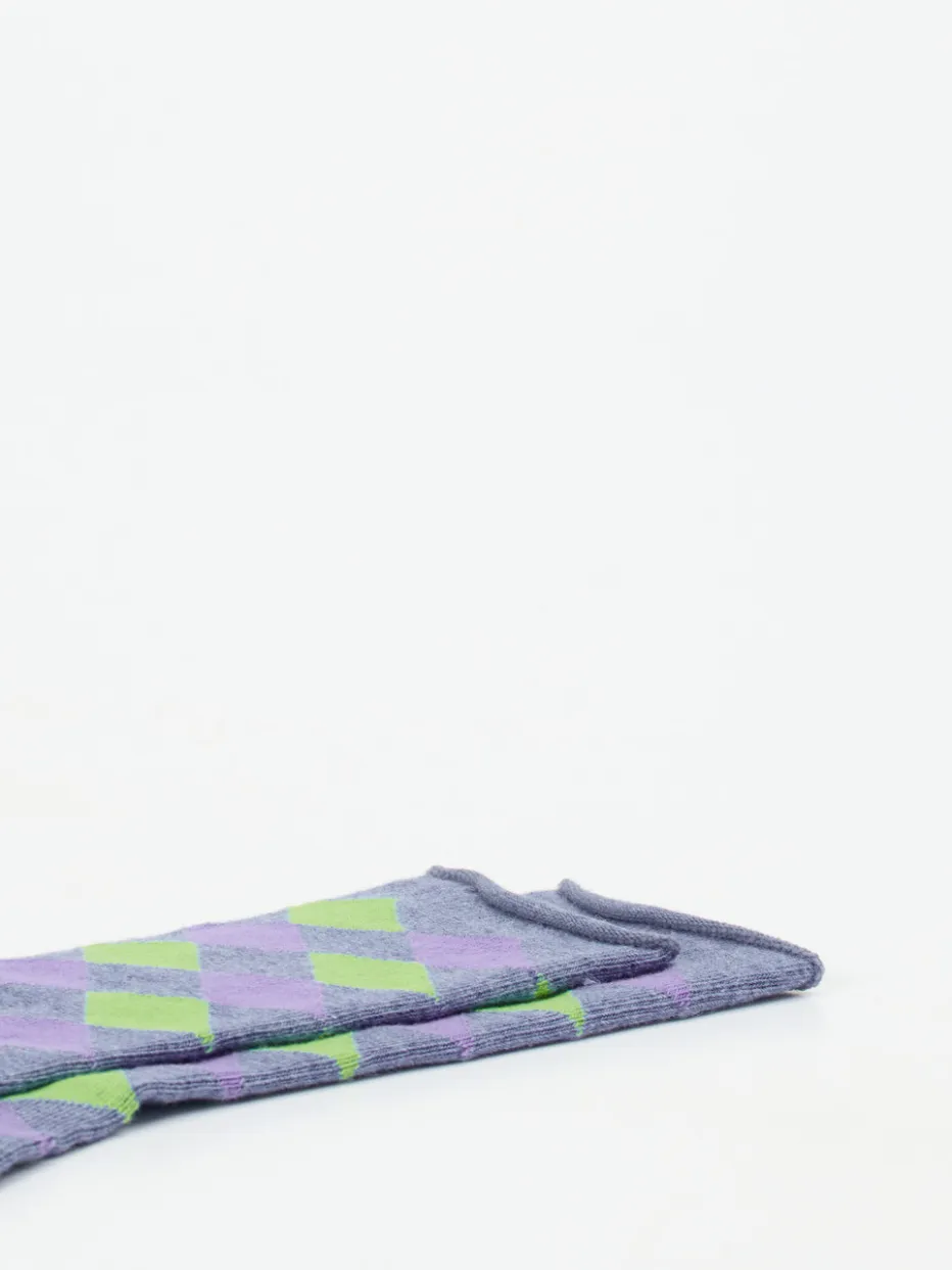 Stilvolles Highlight für entspannte Looks. Burlington präsentiert klassische Damensocken im modernen Preppy-Stil. Perfekt für gemütliche Tage zu Hause oder modische Outfits mit Sneakern und Shorts: Der weiche Wollstrick überzeugt mit elastischem Sitz und einem farbenfrohen Argyle-Muster in Graublau, Flieder und Lindgrün. Die klassische, röhrenförmige Silhouette wird durch einen gerippten Schaftabschluss und verstärkte Partien an Zehen und Ferse sinnvoll ergänzt. Das Design liegt im Trend der Pattern Socks SS25 und greift subtil Y2K-Elemente auf. Ideal für trendorientierte Casual-Looks. Burlington vereint Komfort und modische Raffinesse in ikonischer Sockenqualität.
