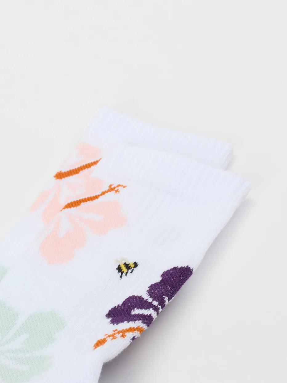 Fein gerippte Baumwollsocken mit floralem Bienenmuster bringen modischen Charme in sommerliche Casual Looks. Der elastische Schaftbund bietet dabei angenehmen Halt.