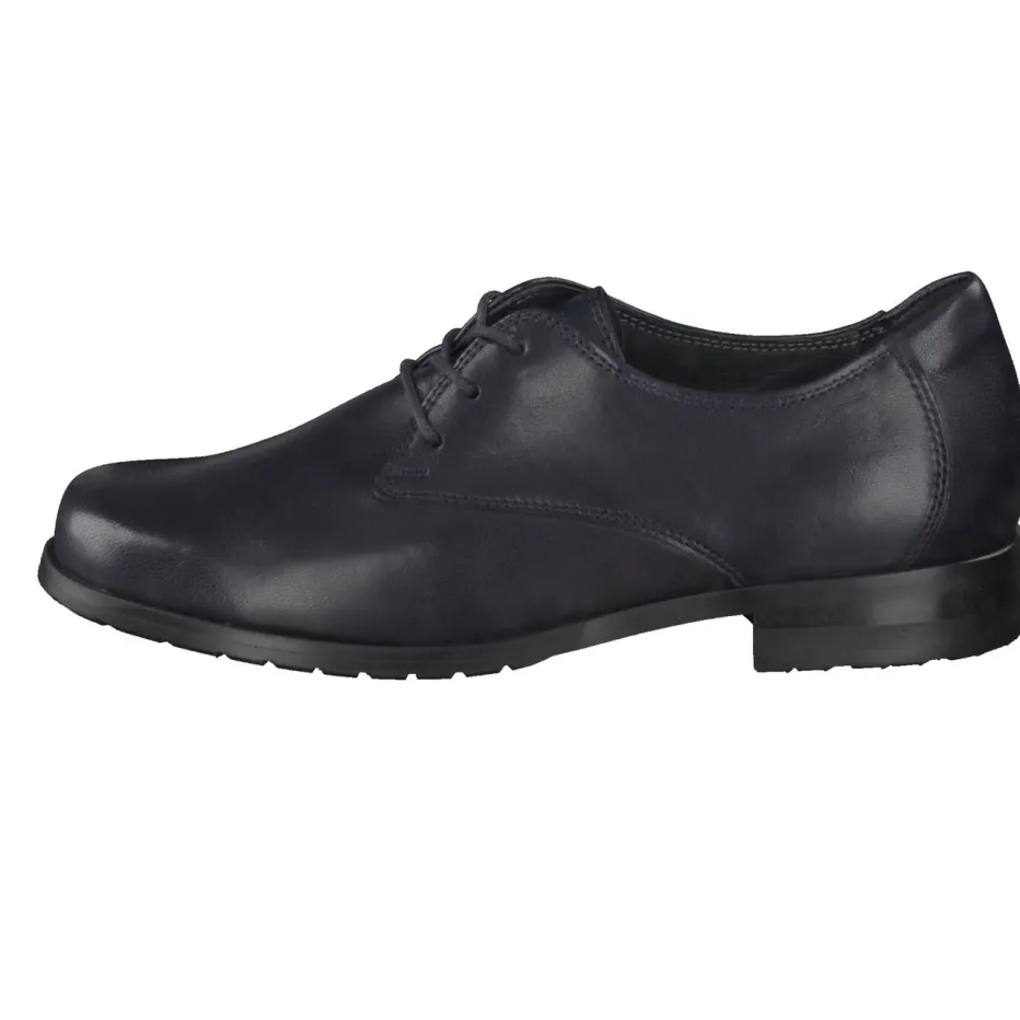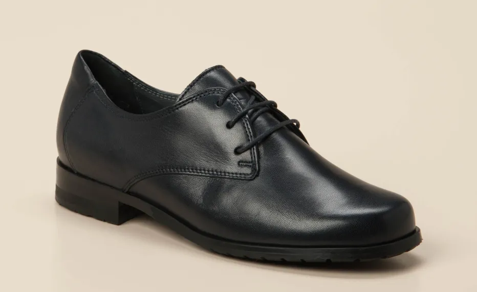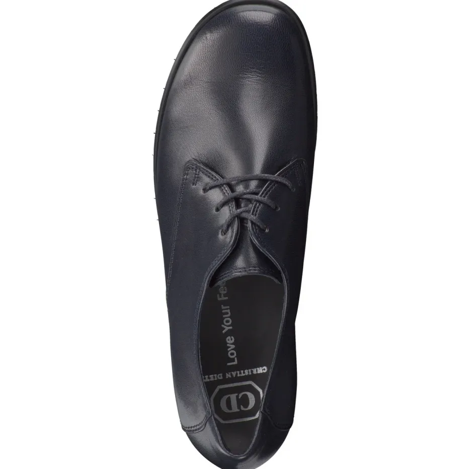 Understatement mit Komfort.Christian Dietz verbindet bei diesem eleganten Damen-Derby zeitloses Design mit funktionalem Mehrwert. Für anspruchsvolle Office-Tage und urbanen Alltag konzipiert, überzeugt das Modell mit dunkelblauem, matt strukturiertem Kalbleder. Die klassische, flache Silhouette mit leicht gepolstertem Einstieg, Schnürung mit drei Ösen und profilierter Gummisohle ergibt ein stimmiges Gesamtbild. Ton-in-Ton-Nähte und eine dezent eckige Zehenpartie unterstreichen den minimalistischen Chic. Dank des austauschbaren Fußbetts eignet sich der Schuh auch für individuelle Einlagen. Ein Favorit innerhalb moderner Quiet-Luxury-Interpretationen. Ein stilvoll komfortabler Begleiter aus dem Hause Christian Dietz.