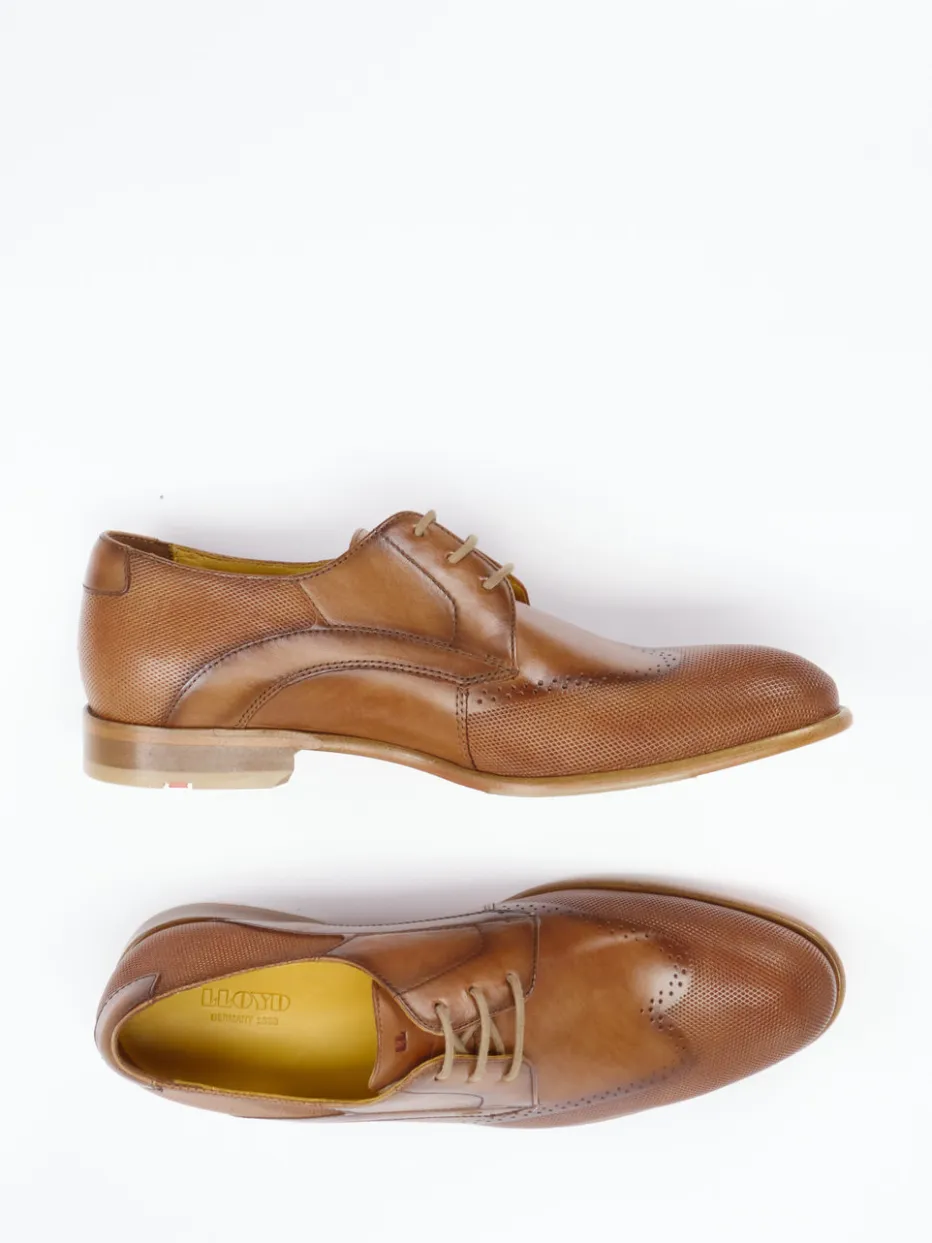 Kalbleder in fein genarbter Ausführung und dezente Brogue-Details verleihen diesem Derby von Lloyd zeitlose Eleganz mit Understatement.