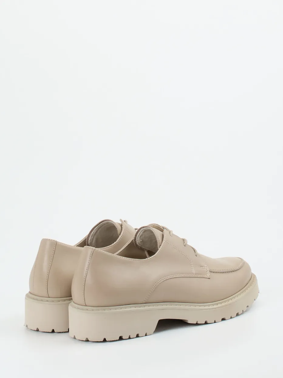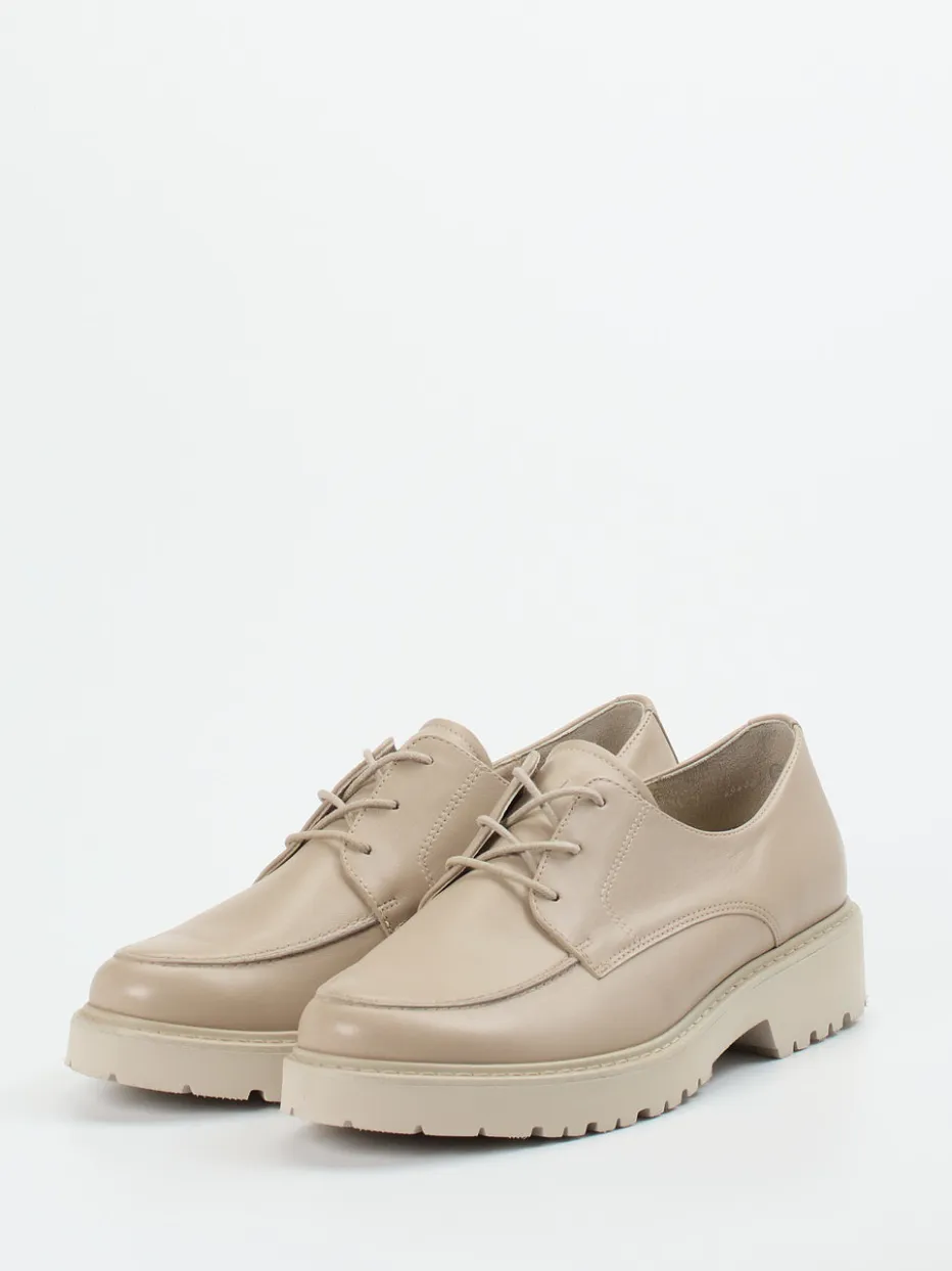 Stilsicher durch den Büroalltag.Dieser Damen-Halbschuh von Semler überzeugt als moderner Derby-Schnürer mit feinem Kalbleder. Im beigefarbenen Ton mit matter Oberfläche wirkt das Modell besonders elegant und passt zu unterschiedlichsten Business-Looks. Die klare Silhouette mit flachem Blockabsatz, Ton-in-Ton-Nähten und profilierter Sohle steht ganz im Zeichen von „Quiet Luxury“ und ist zugleich komfortorientiert. Durch das weich gepolsterte Wechselfußbett ist zusätzlicher Laufkomfort gewährleistet. Die klassische Schnürung sorgt für flexible Anpassung, während das Leder-/Textilfutter ein angenehmes Tragegefühl bietet. Ein stilvoller Begleiter mit modernem Purismus – typisch Semler.
