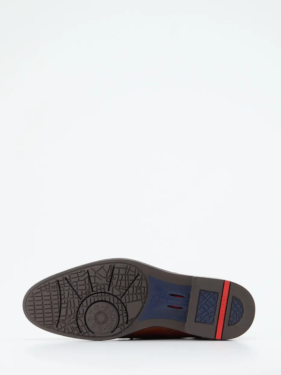 Der elegant geprägte Derby von Lloyd überzeugt durch genarbtes Kalbleder, marineblaue Details und eine dämpfende Gummisohle – eine stilvolle Wahl für Alltag und Büro.