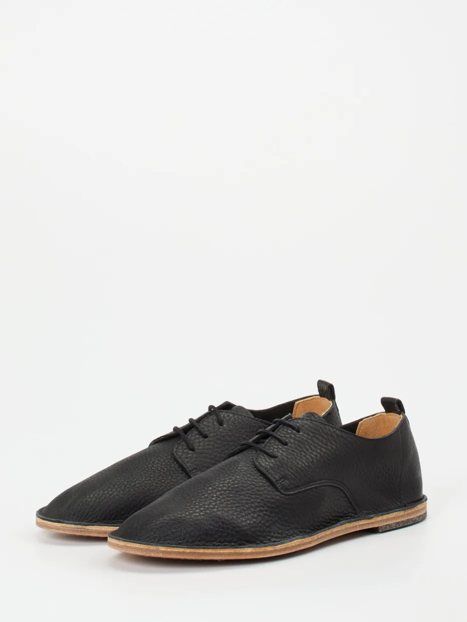 Reduziert, stilvoll, handwerklich gedacht.Joe interpretiert den klassischen Derby-Schnürschuh auf moderne Weise. Für Alltag und Büro gleichermaßen geeignet, verbindet dieses Modell feines, schwarzes Kalbleder mit markanter Narbung und hohem Tragekomfort. Die schmal zulaufende Silhouette, eine naturfarbene Zwischensohle und ein gesprenkelter Gummi-Absatz setzen dezente visuelle Akzente. Die Schnürung mit Zuglasche und das ungefütterte, anschmiegsame Leder unterstreichen die klare Formensprache. Zeitlos, langlebig und von Trends wie Quiet Luxury inspiriert. Ein Statement für stilsichere Männer mit Gespür für Qualität und Understatement.
