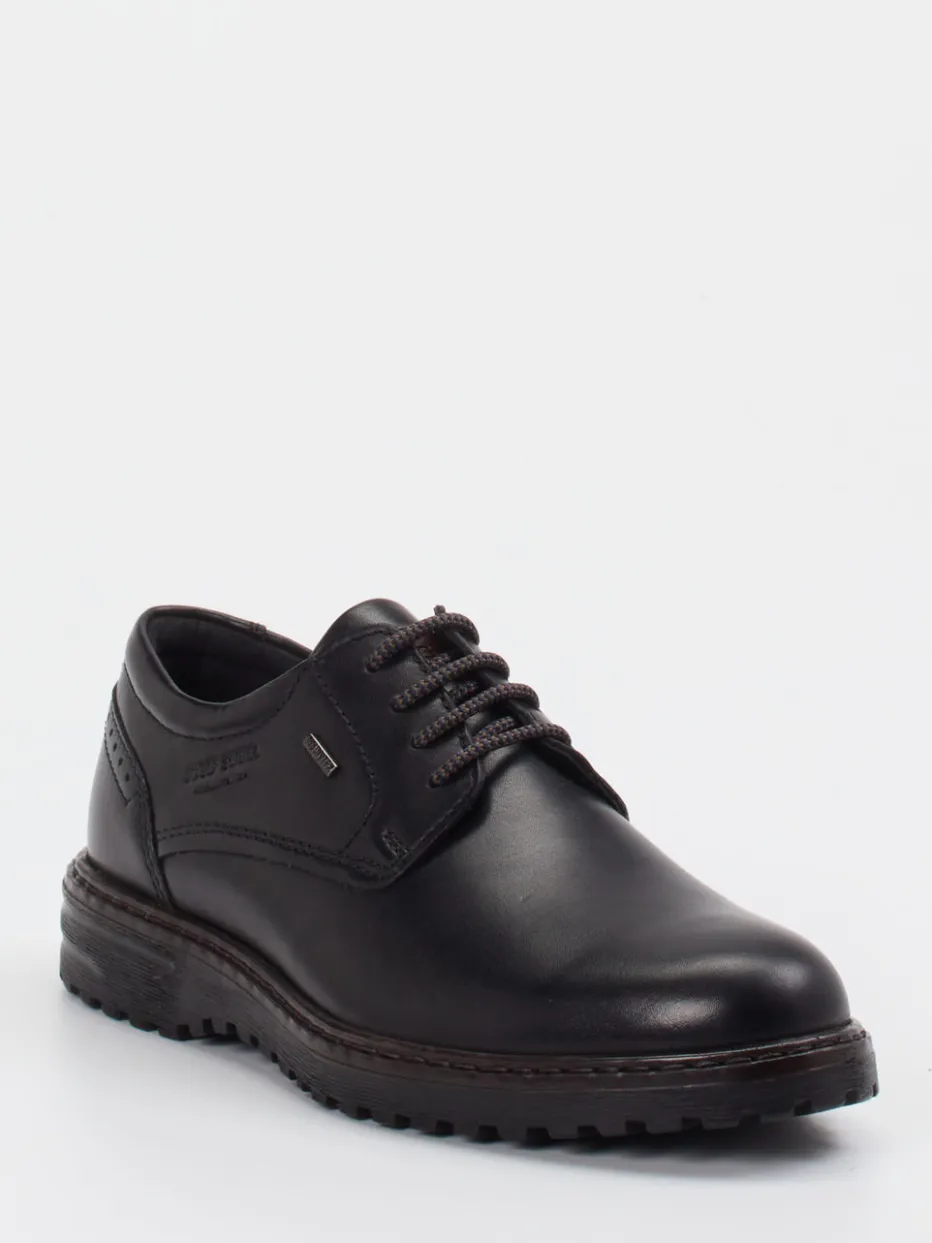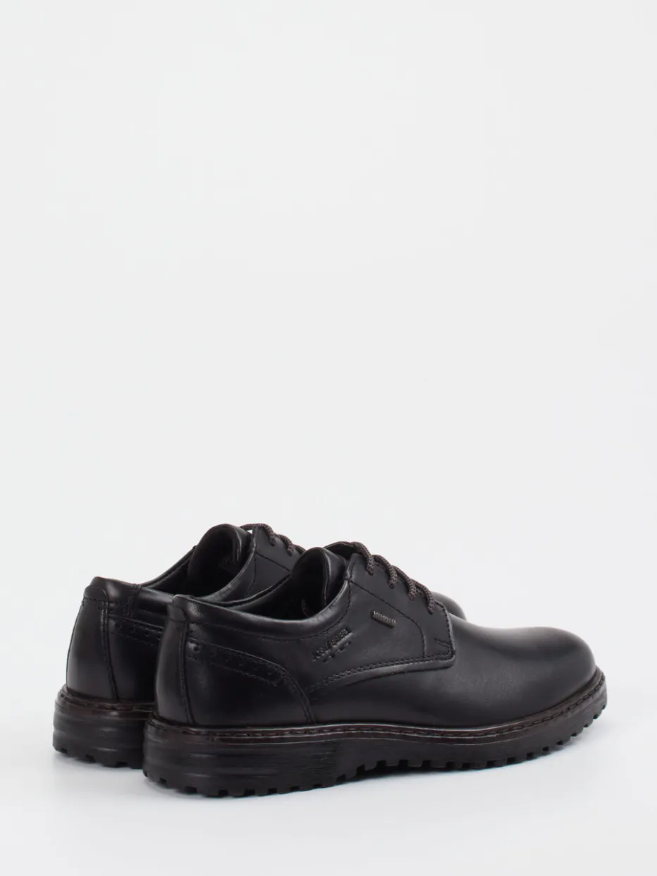 Ob beim Weg ins Büro oder bei urbanen Aktivitäten – das Modell überzeugt durch feines Kalbleder mit matter Oberfläche und dezente Ton-in-Ton-Nähte. Die klassische, leicht abgerundete Silhouette wird mit profilierter Gummisohle kombiniert, die Trittsicherheit im Alltag bietet. Das seitlich geprägte Branding sowie die wasserabweisende Membran ergänzen das minimalistische Design funktional. Die klare Linie passt ideal zu dunkel gehaltenen Stoffhosen oder smarten Jeans.