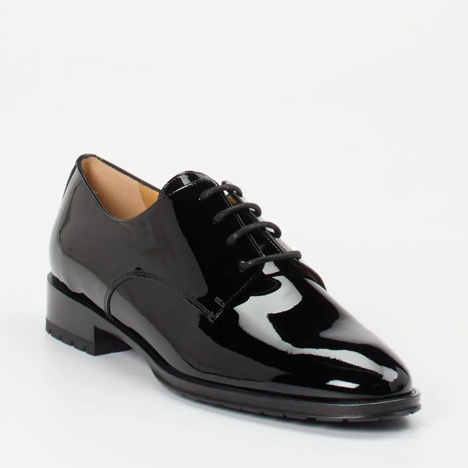 Der elegante Damen-Derby von Truman’s vereint glänzendes Lackleder mit klassischer Silhouette und modernem Komfort – perfekt für den formellen Auftritt.