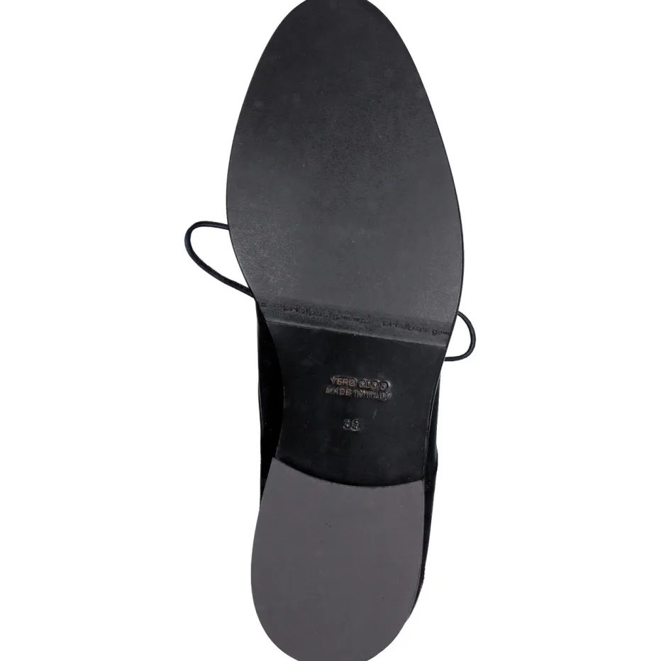 Dieser Damen-Derby aus handschuhweichem Lammleder überzeugt mit hoher Materialqualität, glänzender Oberfläche und zeitloser Linienführung für Business und Alltag.