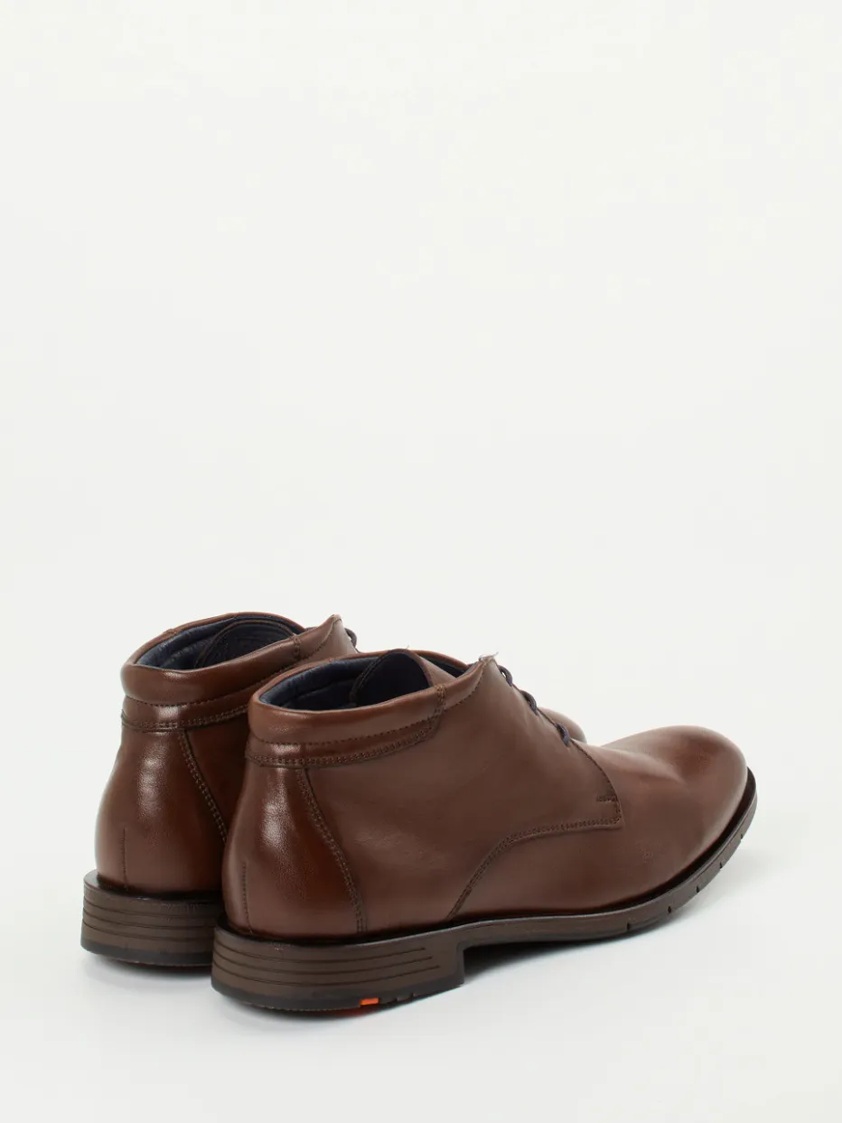 Smart und souverän im Alltag.Die Marke Lloyd verleiht den Herren-Desert Boots eine Eleganz, die sich im Büro wie in der Freizeit bewährt. Fein glänzendes Kalbleder in Mittelbraun und eine markant-kontrastierende 3-Loch-Schnürung mit dunkelgrauen Schnürsenkeln setzen klassische Akzente. Der knöchelhohe Schnitt wirkt dank schmal zulaufender Silhouette modern und stilbewusst. Die leichte Gummisohle mit rutschhemmender Struktur sorgt gemeinsam mit dem soften Memory Foam Fußbett für ausgezeichneten Tragekomfort. Dezente Ziernähte und ein gepolsterter Schaftrand runden das minimalistische Design ab. Ein idealer Begleiter für Smart Comfort Looks der Herbst/Winter Saison. Komfort trifft auf Ästhetik in echter Lloyd-Qualität.