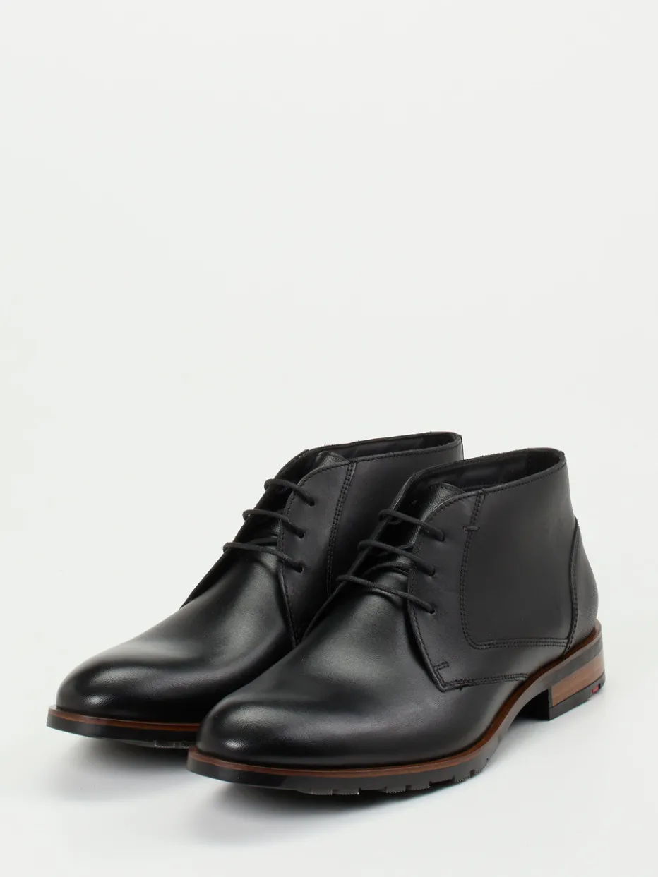 Klassisch, robust und elegant – diese Desert Boots von Lloyd vereinen hochwertiges schwarzes Kalbleder mit funktionalen Details für vielseitige Einsatzmöglichkeiten.