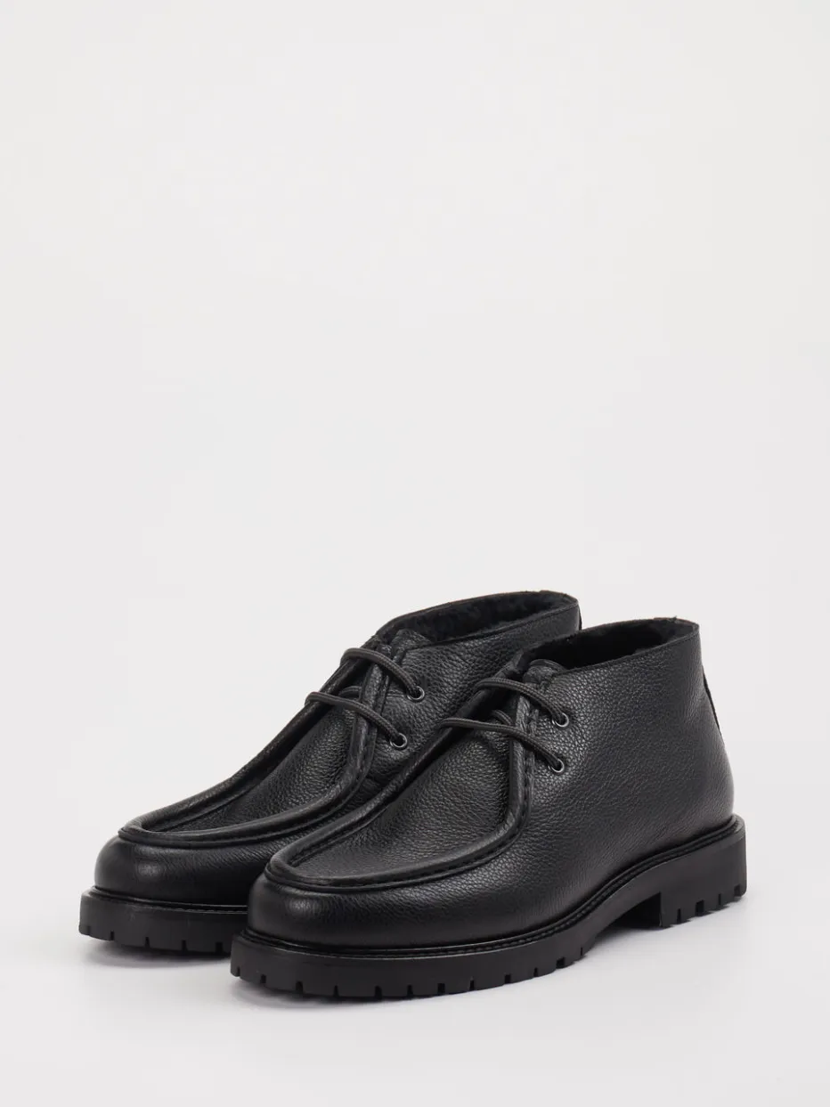 Diese Desert Boots aus strukturiertem Kalbleder verbinden klare Formgebung mit robuster Funktionalität. Das Lammfellfutter sorgt für wohlige Wärme an kühlen Tagen.