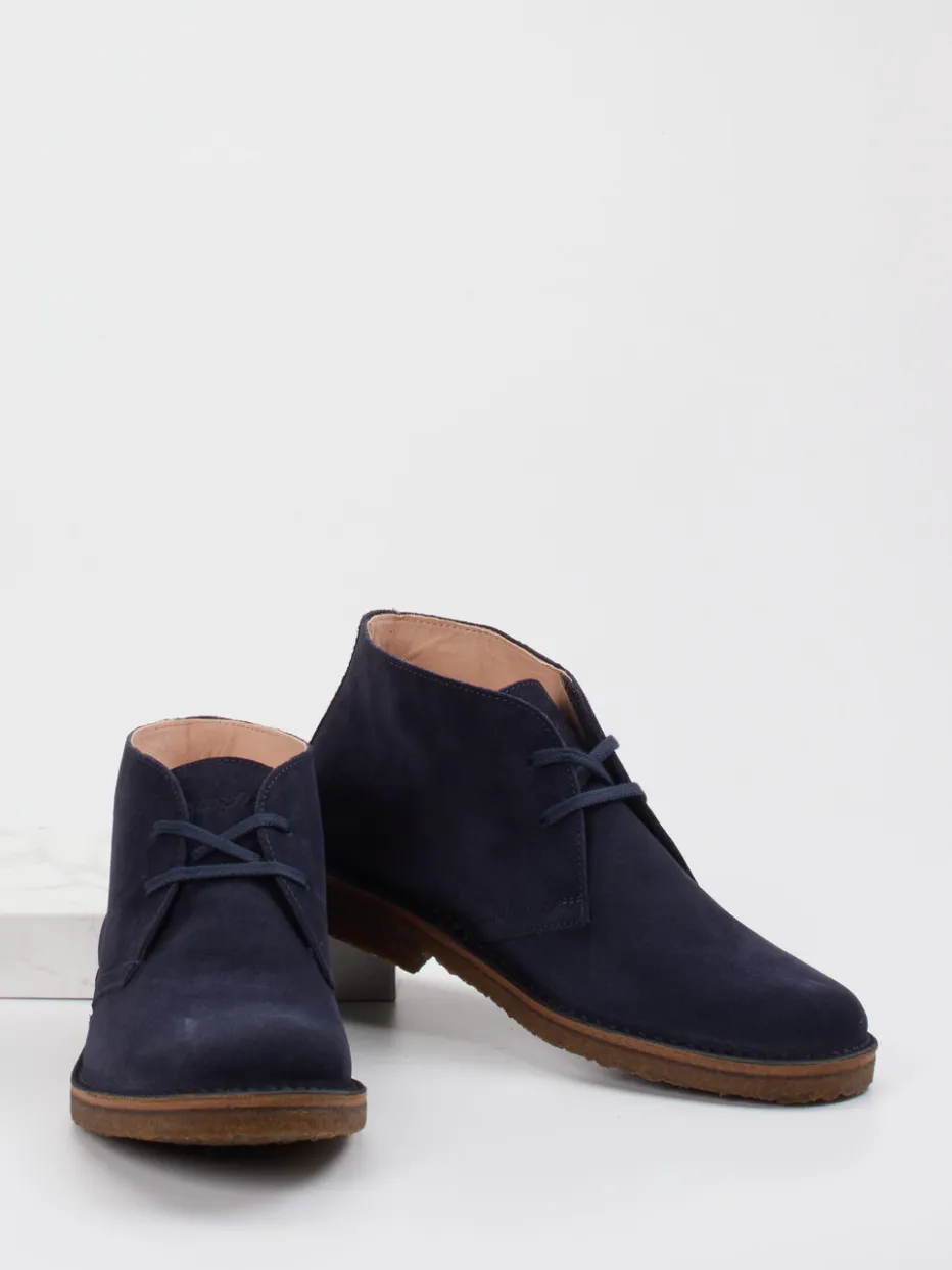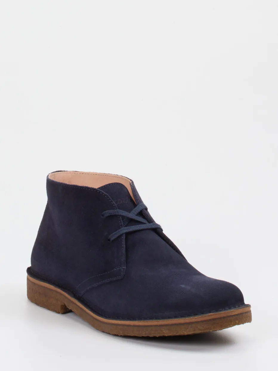Minimalismus trifft Komfort.Astorflex präsentiert klassische Desert Boots für Herren – gefertigt aus dunkelblauem Veloursleder mit samtig matter Oberfläche. Ideal für lange Bürotage oder entspannte Wochenend-Outfits: Das butterweiche Obermaterial sorgt zusammen mit dem Lederfutter für angenehme Trageeigenschaften. Die knöchelhohe Form in klarer Linie und die naturfarbene Kreppsohle verleihen dem Modell einen authentischen Heritage-Charakter. Dezente Nähte, eine schnörkellose 2-Loch-Schnürung und die verstärkte Ferse unterstreichen die zurückhaltende Ästhetik. Perfekt zu Chinohosen und Strickpullovern im hochwertigen Casual-Look. Astorflex steht für zeitlose Designs mit traditioneller Schuhmacherkunst.