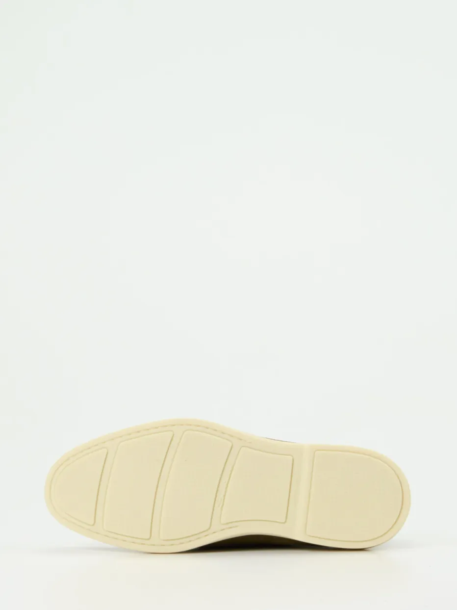 Italienische Eleganz, neu interpretiert.Die Marke Santoni bringt mit diesen Desert Boots eine moderne Version der klassischen Herren-Stiefelette auf den Punkt. Ob für den Weg ins Büro oder ein entspanntes Wochenende – das olivbraune Veloursleder, samtig und matt, schafft eine stilvolle Verbindung von Komfort und visueller Raffinesse. Besonders elegant wirkt der Schlupf-Einstieg mit versteckten Gummizügen, ergänzt durch eine kontrastierende cremeweiße Kreppoptik-Sohle. Die klare Silhouette und Ton-in-Ton-Nähte unterstreichen die minimalistische Formsprache. Inspiration bietet der „Quiet Luxury“-Trend, ideal kombinierbar mit Chinos und cognacfarbenem Gürtel. Ein Schuh mit exzellentem Tragekomfort und italienischem Anspruch an Qualität.