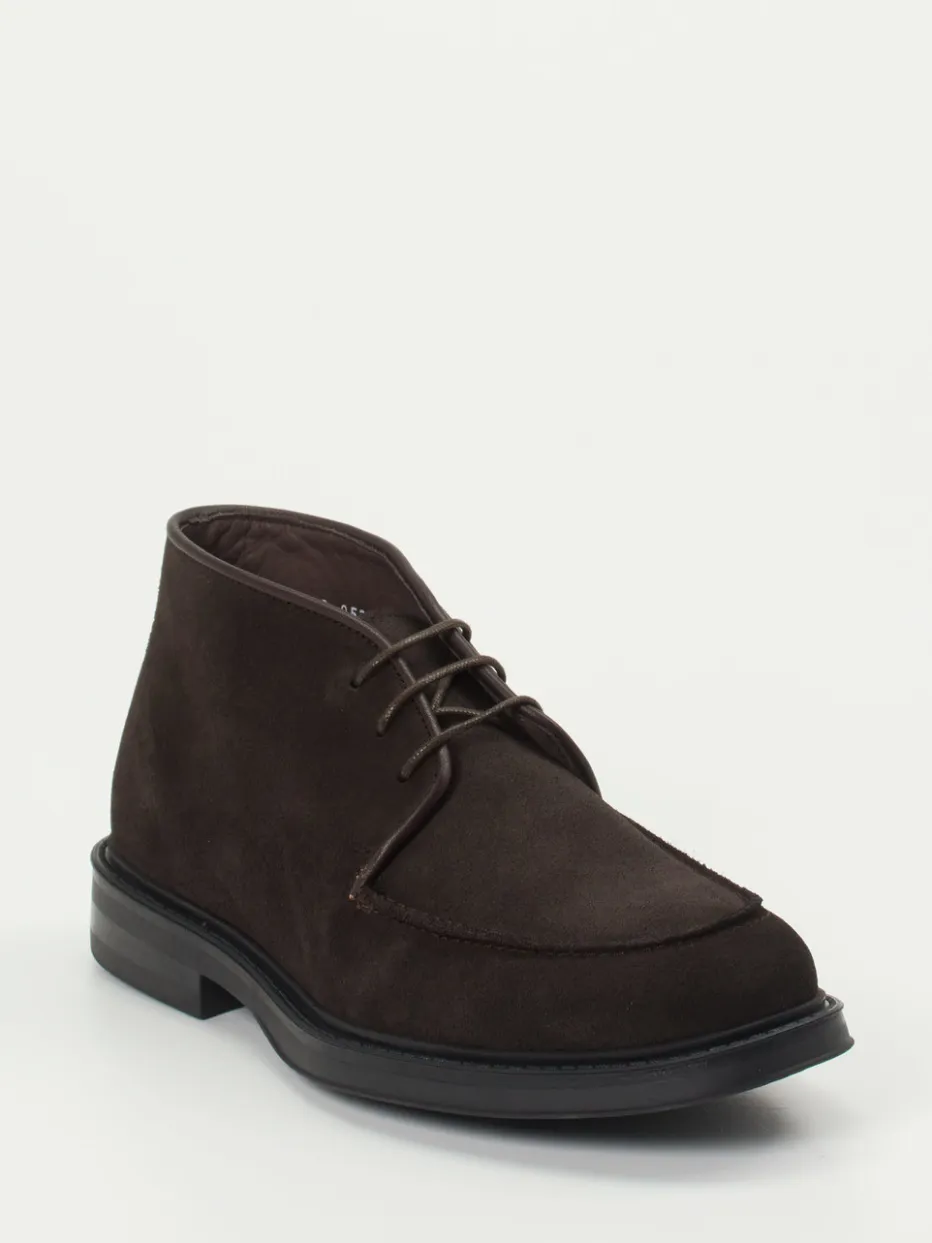 Diese klassisch geschnittenen Desert Boots verbinden dunkelbraunes Veloursleder mit einer rutschfesten Gummisohle – ideal für gepflegte Alltags- und Büro-Outfits.
