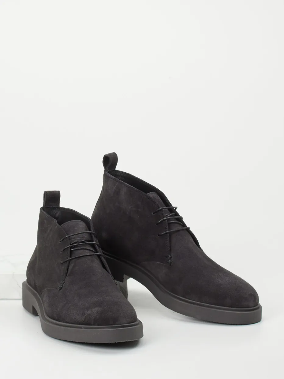 Ob für den Büroalltag oder den stilvollen Auftritt in der Freizeit – die Boots aus echtem Veloursleder in dunklem Anthrazit überzeugen mit matter Oberfläche, tonalen Nähten und schmaler Silhouette. Die knöchelhohe Form mit dezenter Dreiloch-Schnürung und hinterer Zuglasche zeigt klare Linien. Eine flexible Gummisohle rundet das Modell funktional ab. Zeitgemäße Stilrichtungen wie „Quiet Luxury“ und „Soft Utility“ spiegeln sich im Look wider. Perfekt kombinierbar mit schmaler Stoffhose und Kaschmirpullover.