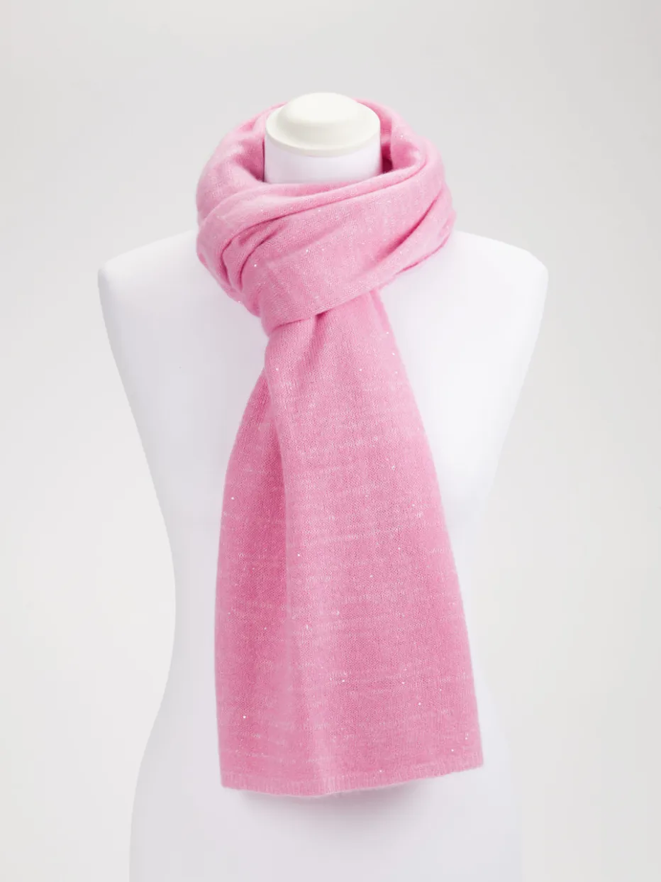 Der weiche Feinstrickschal kombiniert dezente Glitzereffekte mit einer zarten Farbgebung für stilvolle Looks zwischen Alltag und Eleganz.