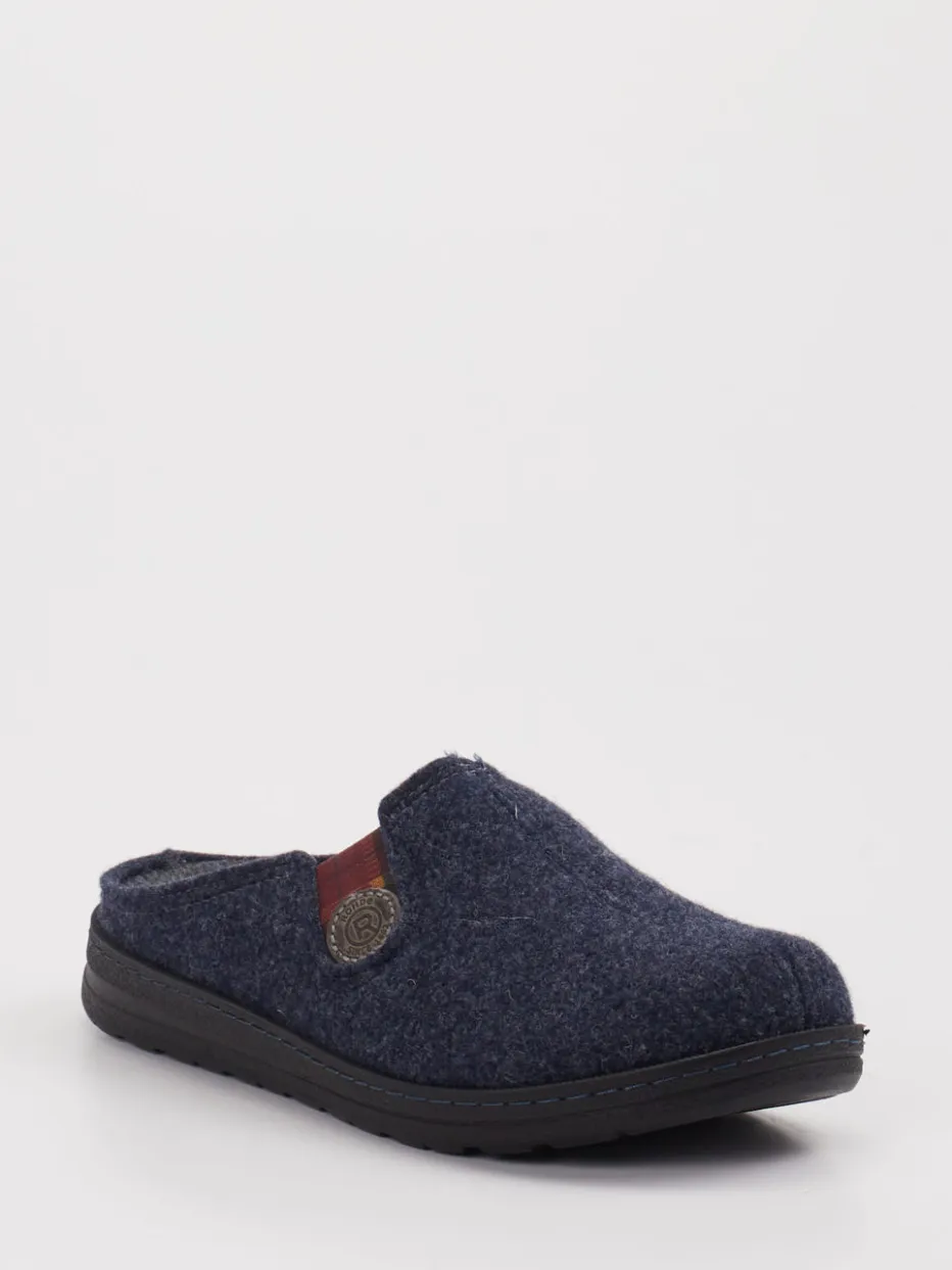 Wohliger Komfort für Zuhause. Die Marke Rohde präsentiert mit diesen Pantoffeln ein durchdachtes Hausschuhmodell für Alltag und Entspannungszeit. Das weiche Filzmaterial mit melierter Oberfläche liegt angenehm am Fuß und sorgt in Kombination mit der rutschhemmenden Gummisohle für Sicherheit auf glatten Böden. Der dunkelblaue Farbton harmoniert mit einem karomusternen Elastikband in Dunkelrot und Schwarz, das nicht nur optisch auffällt, sondern auch für einen komfortablen Sitz sorgt. Die offene Fersenform erleichtert das Hineinschlüpfen, ein geprägter Knopf mit Logo unterstreicht das Design. Passend zur Loungewear und ideal für den skandinavisch inspirierten Slow-Living-Lifestyle. Verlässliche Wärme und praktischer Komfort – angelehnt an Rohdes Designtradition.