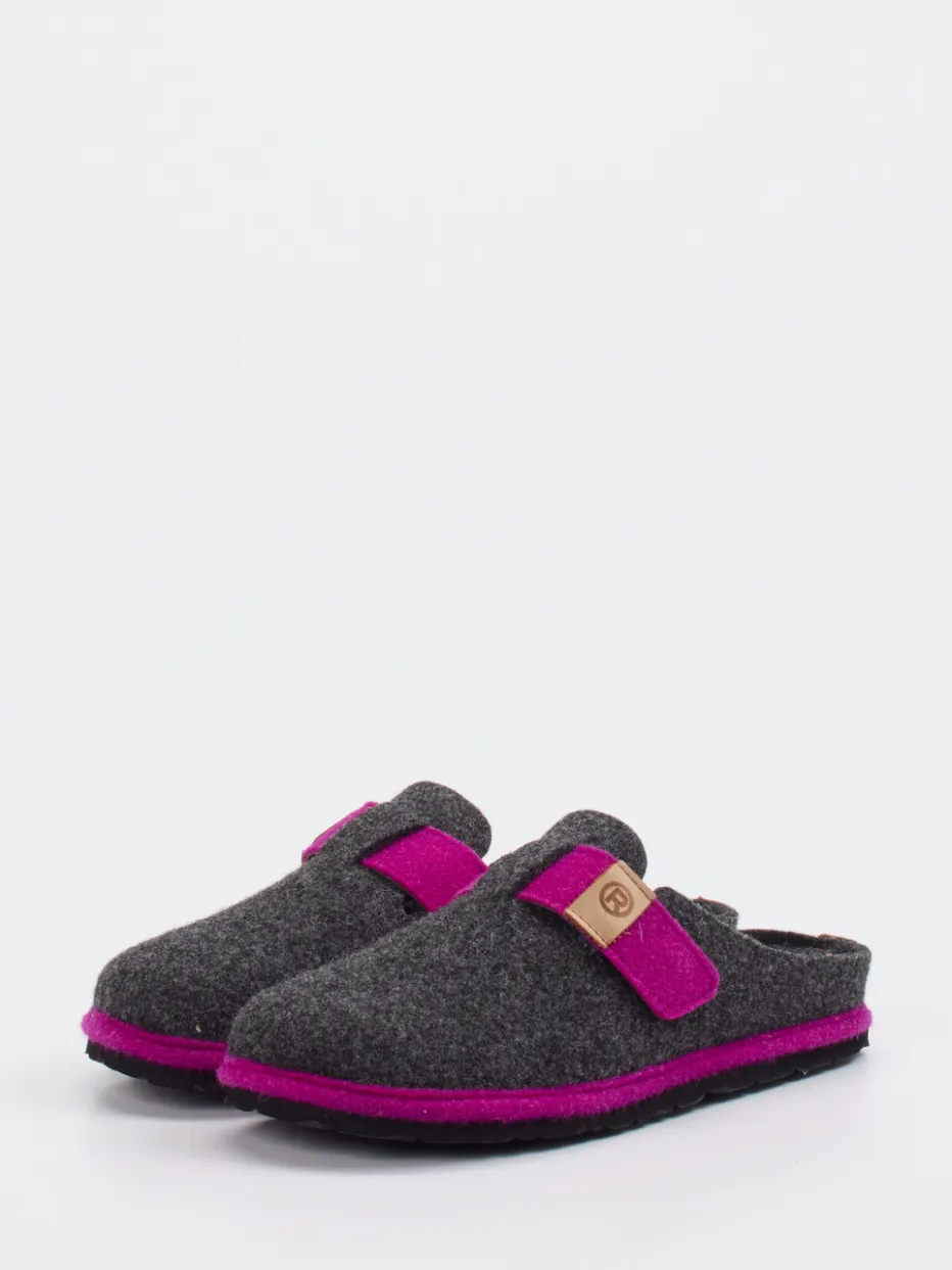 Wärmender Komfort für entspannte Momente.Rohde präsentiert klassische Hausschuhe in Form von Filzpantoffeln. Ideal für ruhige Abende daheim, überzeugen sie durch ihren Materialmix aus robustem Filz mit filziger Haptik und einer profilierten Gummisohle. Das Modell zeigt sich in zurückhaltendem Anthrazitgrau, akzentuiert durch einen farbigen Filzbesatz in Fuchsia und ein kleines Leder-Logo-Patch. Die offene Fersenpartie und das puristische Design greifen den Minimalismus-Trend auf – passend zum aktuellen „Comfort Core“. Harmoniert perfekt mit Loungewear und kuscheligen Wollsocken. Rohde setzt bei diesen Pantoffeln auf entspannte Funktionalität und klaren Stil.