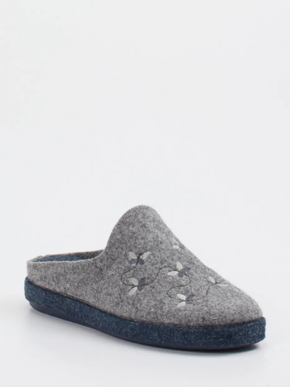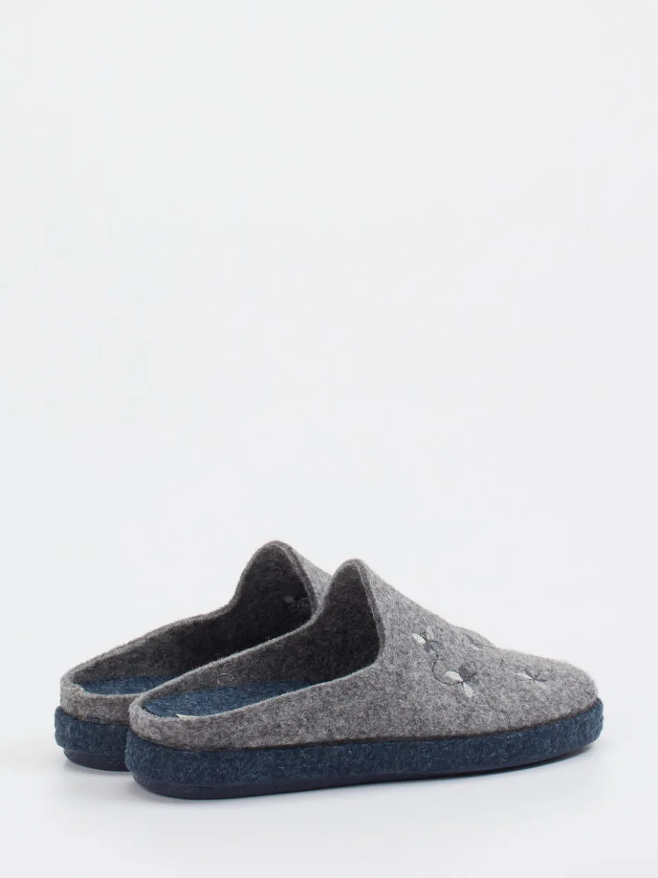 Wärme trifft auf Wohlfühl-Stil.Josef Seibel Relax präsentiert klassische Filzpantoffeln für Damen. Ob beim morgendlichen Kaffee oder nach einem langen Arbeitstag – die weiche Filzverarbeitung sorgt für wärmenden Komfort. Die mittelgraue Ton-in-Ton-Optik betont den dezenten Look, akzentuiert durch florale Stickereien. Die Clog-Form mit geschlossener Front und offener Ferse unterstützt schnelles Hineinschlüpfen, während die profilierte Gummisohle für Trittsicherheit sorgt. Inspiriert von alpiner Gemütlichkeit, fügt sich das Design perfekt in die Trends rund um Natural Comfortwear ein. Ideal zu kuscheligen Stricksocken und Loungewear. Alltagskomfort auf bewährtem Niveau von Josef Seibel.