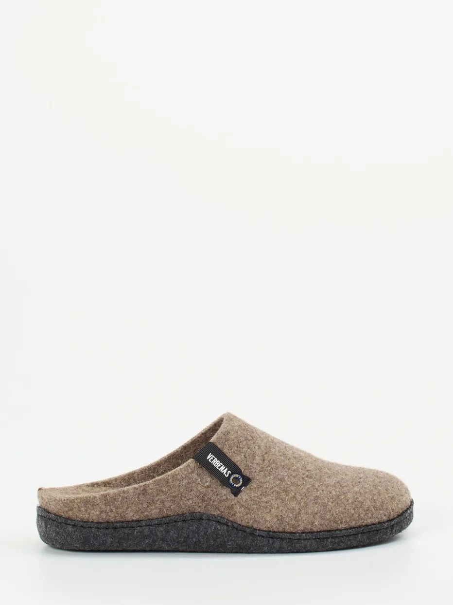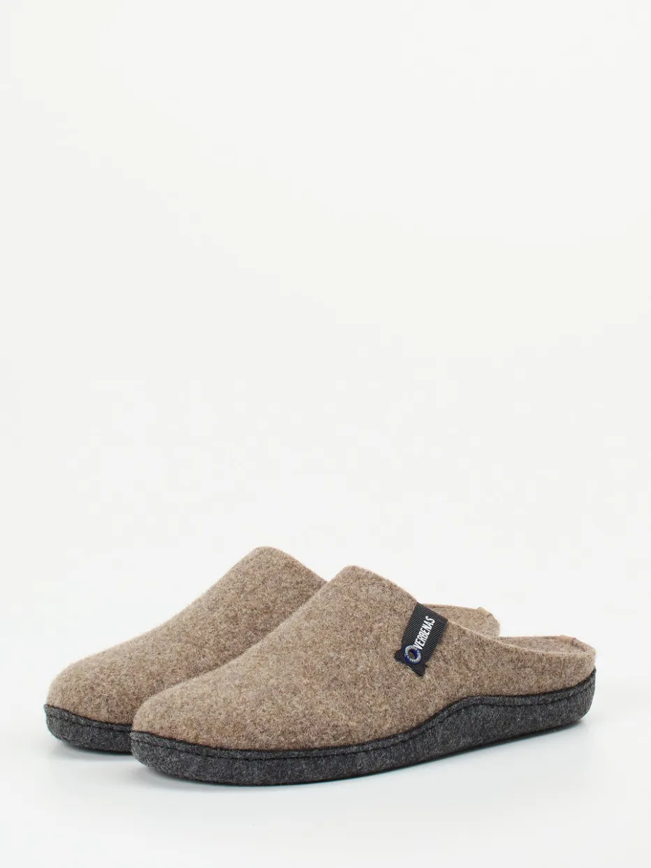 Skandinavischer Komfort für zu Hause.Die Marke Verbenas präsentiert klassische Filzpantoffeln für entspannte Momente daheim. Ideal für gemütliche Stunden bei kühlem Wetter bieten diese Unisex-Hausschuhe durch recycelten Wollfilz ein wärmendes Tragegefühl, ohne Hitzestau. Der mittelbraune Farbton wirkt natürlich und zurückhaltend, während die ergonomisch geformte, anthrazitfarbene Sohle mit Noppenstruktur für Rutschfestigkeit sorgt. Die offene Ferse erleichtert das Hineinschlüpfen, ein seitliches Markenlabel setzt einen dezenten Akzent. Der minimalistische Look passt perfekt zur Scandi-Living-Ästhetik und harmoniert mit Loungewear oder Wollsocken. Nachhaltiger Wohlfühlstil von Verbenas mit funktionalem Designanspruch.
