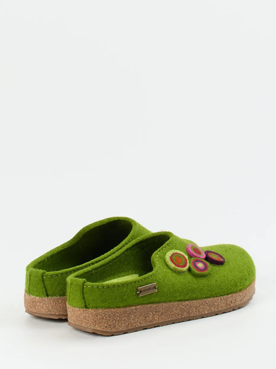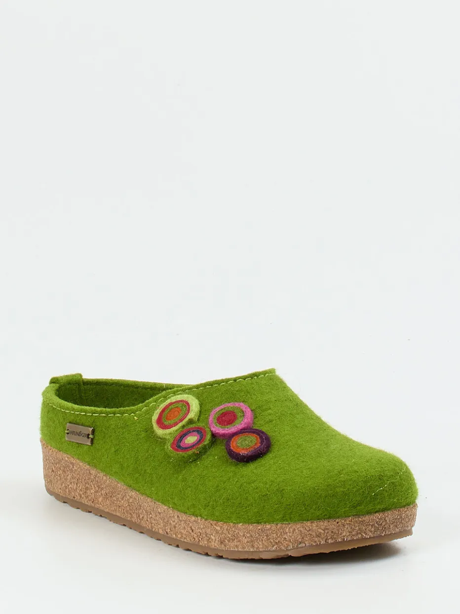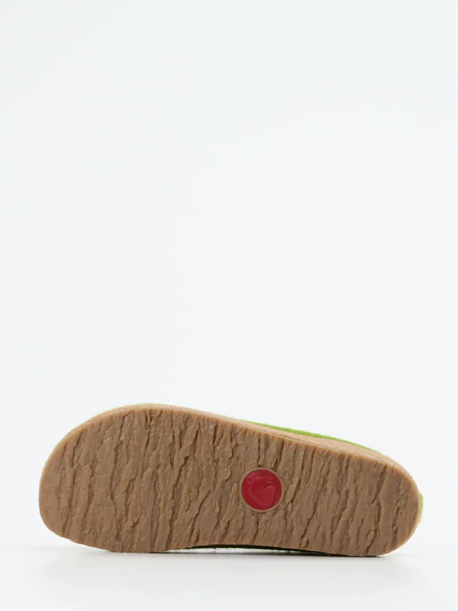 Wohliger Komfort trifft natürliche Leichtigkeit.Haflinger steht für Qualität und Wohlgefühl – dieser Damenhausschuh verbindet beides. Wenn der Tag entspannte Momente zu Hause schenkt, bieten diese Filzpantoffeln in frischem Apfelgrün mit filziger Schurwoll-Oberfläche angenehme Wärme und ein weiches Tragegefühl. Das ergonomische Kork-Latex-Fußbett unterstützt bequem, während die rutschfeste Gummisohle sicheren Halt gewährt. Bunte Applikationen setzen fröhliche Akzente, ein seitliches Metall-Label rundet das Design ab. Inspiriert von alpiner Gemütlichkeit fügt sich dieses Modell stilvoll in natürliche Homewear-Looks. Nachhaltiger Hausschuhkomfort – typisch Haflinger.