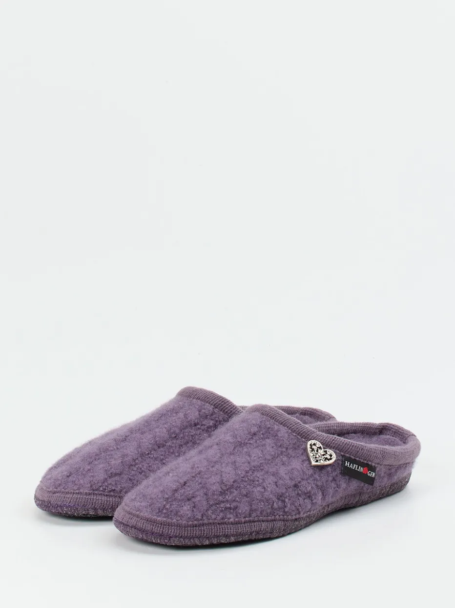 Wohlfühlzeit für Zuhause.Haflinger präsentiert mit diesen Filzpantoffeln einen hochwertigen Hausschuh für Damen, der Wärme und Stil vereint. Ideal für entspannte Momente daheim bietet das Modell durch reine Schurwolle ein ausgeglichenes Fußklima – wärmend und dennoch atmungsaktiv. Die fliederlila Farbgebung wirkt sanft und modern, ergänzt durch ein herzförmiges Metallelement und dezent akzentuierte Einfassungen. Mit ihrer offenen Ferse in Clog-Form, einer weich gearbeiteten Filzsohle und dem anatomisch geformten Korkfußbett sind sie perfekt für langes Tragen geeignet. Der Look spielt raffiniert mit Alpenstil und Cozy-Aesthetic-Trends. Traditionsbewusst in Optik und Komfort – Haflinger vereint Handwerk mit Leichtigkeit.