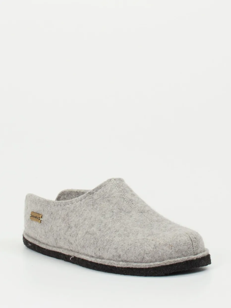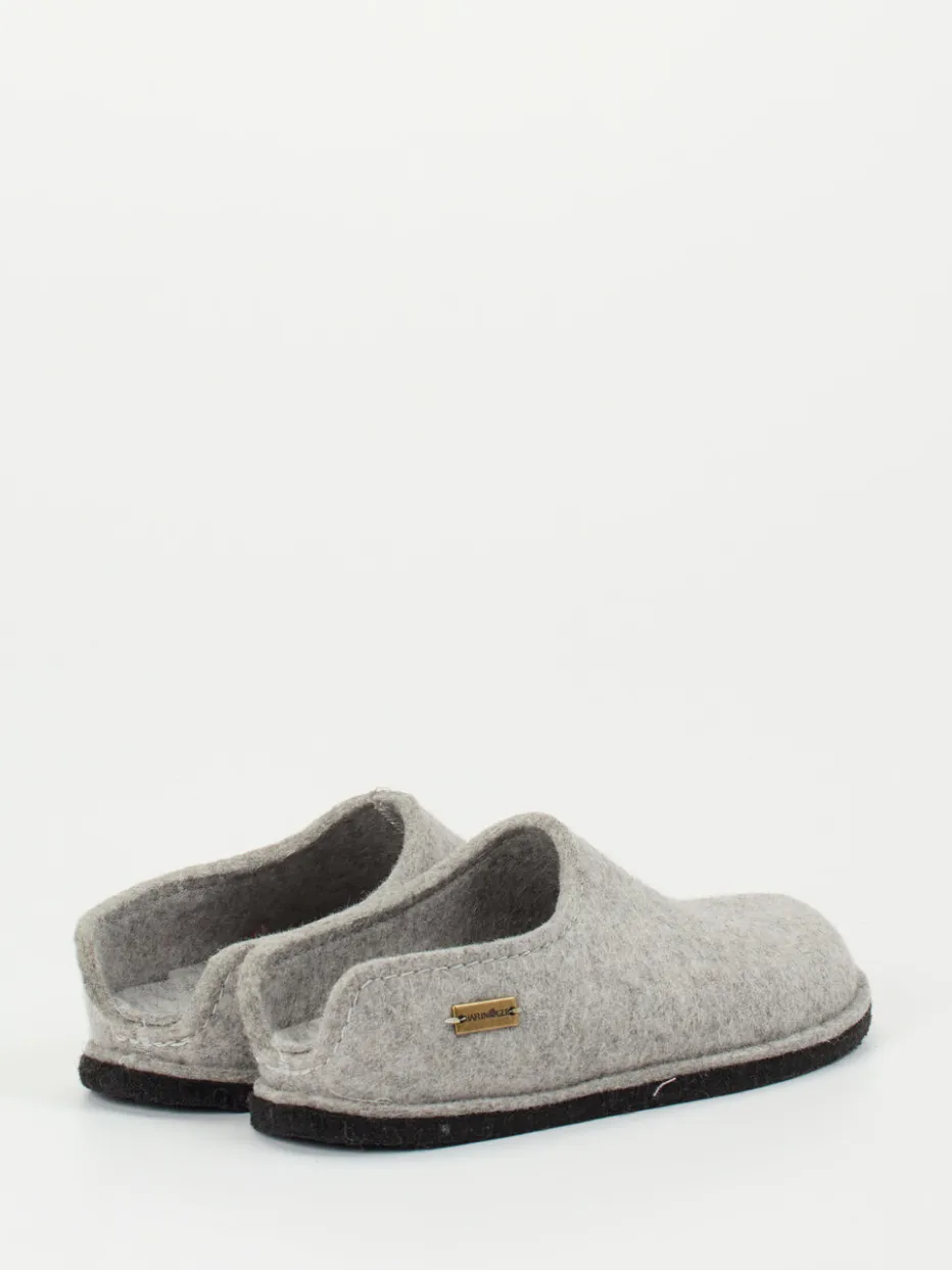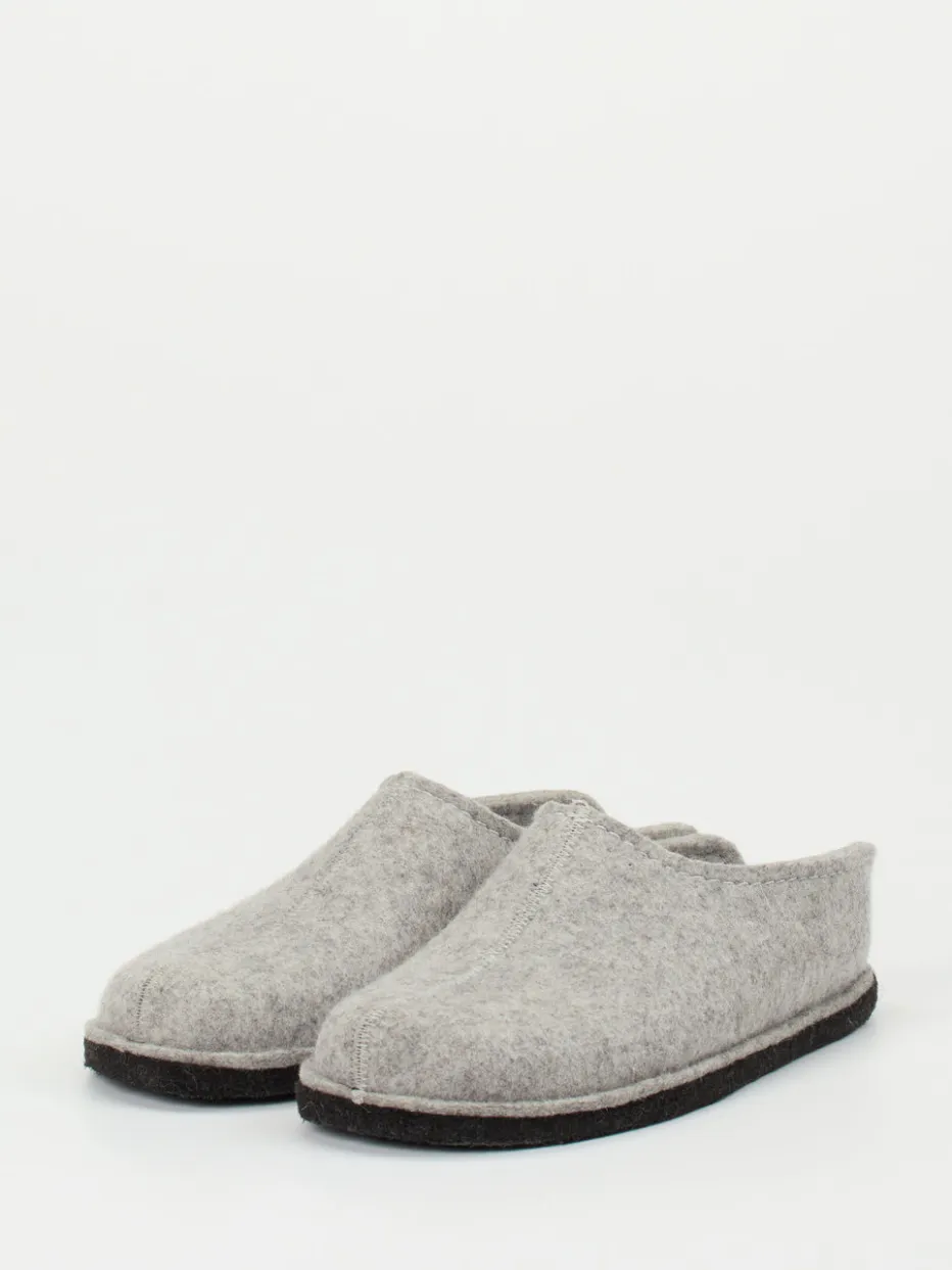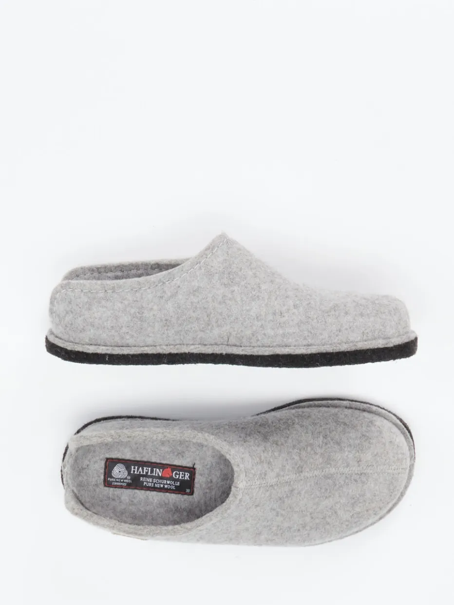 Diese hellgrauen Pantoffeln von Haflinger überzeugen durch reine Schurwolle, filzige Struktur und unkomplizierten Schlüpfeinstieg – perfekt für stilvollen Komfort zuhause.