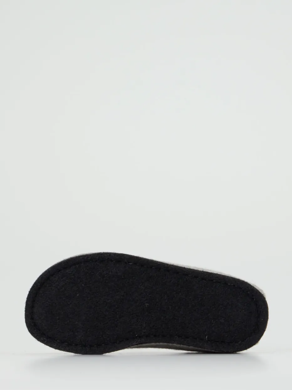 Wärmender Komfort mit skandinavischem Flair.Der Filzpantoffel von Haflinger verbindet traditionelles Material mit moderner Formensprache. Wenn es draußen kalt ist, sorgt dieser geschlossene Hausschuh aus 100 % Schurwolle für ein angenehm temperiertes Fußklima – atmungsaktiv und temperaturregulierend. Das filzige Obermaterial zeigt sich in einem zeitlosen Hellgrau und ergänzt durch eine schwarze, leicht strukturierte Filzsohle mit Latexbeschichtung. Die runde, ergonomische Form und der offene Fersenausschnitt bieten Komfort beim Hineinschlüpfen, ohne den Halt zu verlieren. Ein kleines Metalllabel akzentuiert unaufdringlich das minimalistische Design. Ideal für entspannte Stunden in natürlichem Ambiente – ob zu Loungewear oder Wollsocken. Markentypischer Wohlfühlkomfort mit reduzierter Ästhetik.