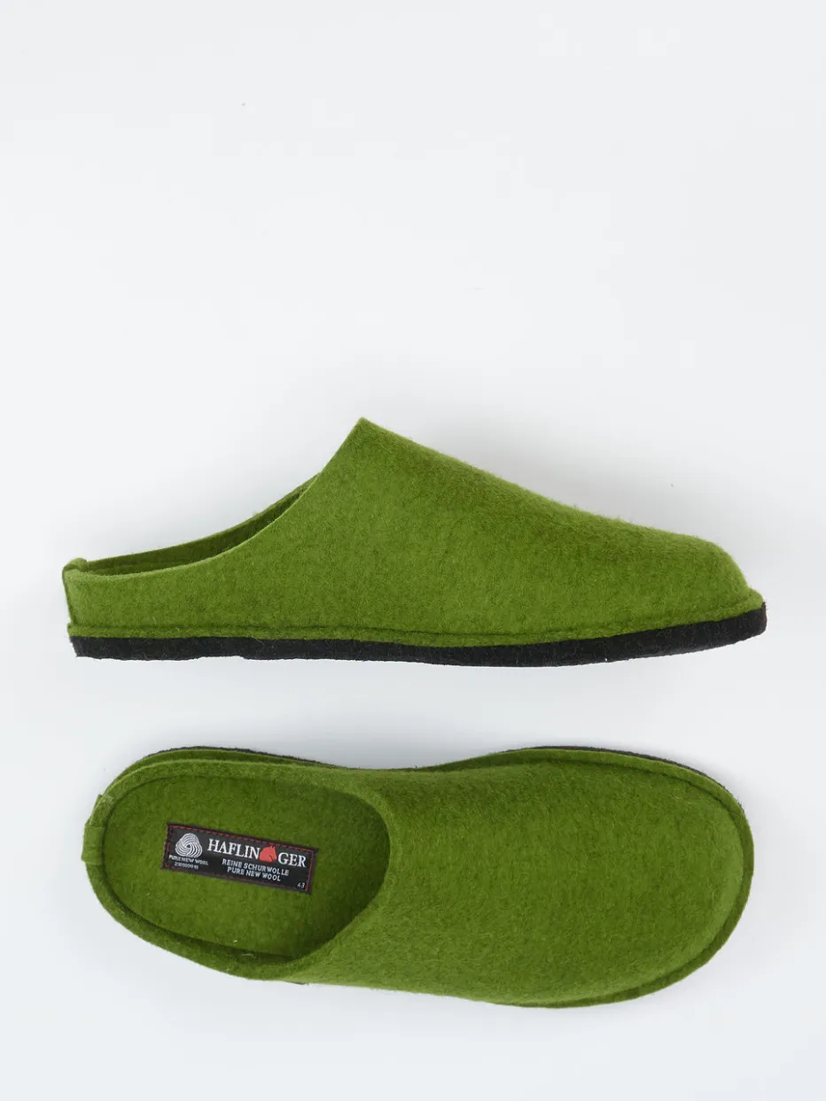Natürlich entspannt wohnen.Hausschuhe von Haflinger bieten gemütlichen Komfort für den Alltag zu Hause. Die Filzpantoffeln aus hochwertiger, gewalkter Schurwolle in kräftigem Moosgrün sorgen für wohlig warme Füße. Der Clog-artige Schnitt mit offenem Fersenbereich erlaubt schnelles Anziehen, während das anatomisch geformte Fußbett und die gummierte, rutschhemmende Außensohle täglichen Halt bieten. Der schlichte Unilook, das dezente Metall-Label und die filzige Textur unterstreichen den minimalistischen Charakter – ideal im Kontext moderner „Slow Living“-Trends. Harmoniert hervorragend mit einem Fleece-Hausanzug oder kuscheligen Wollsocken. Haflinger steht für natürliche Materialien und durchdachten Wohnkomfort mit stilvollem Anspruch.