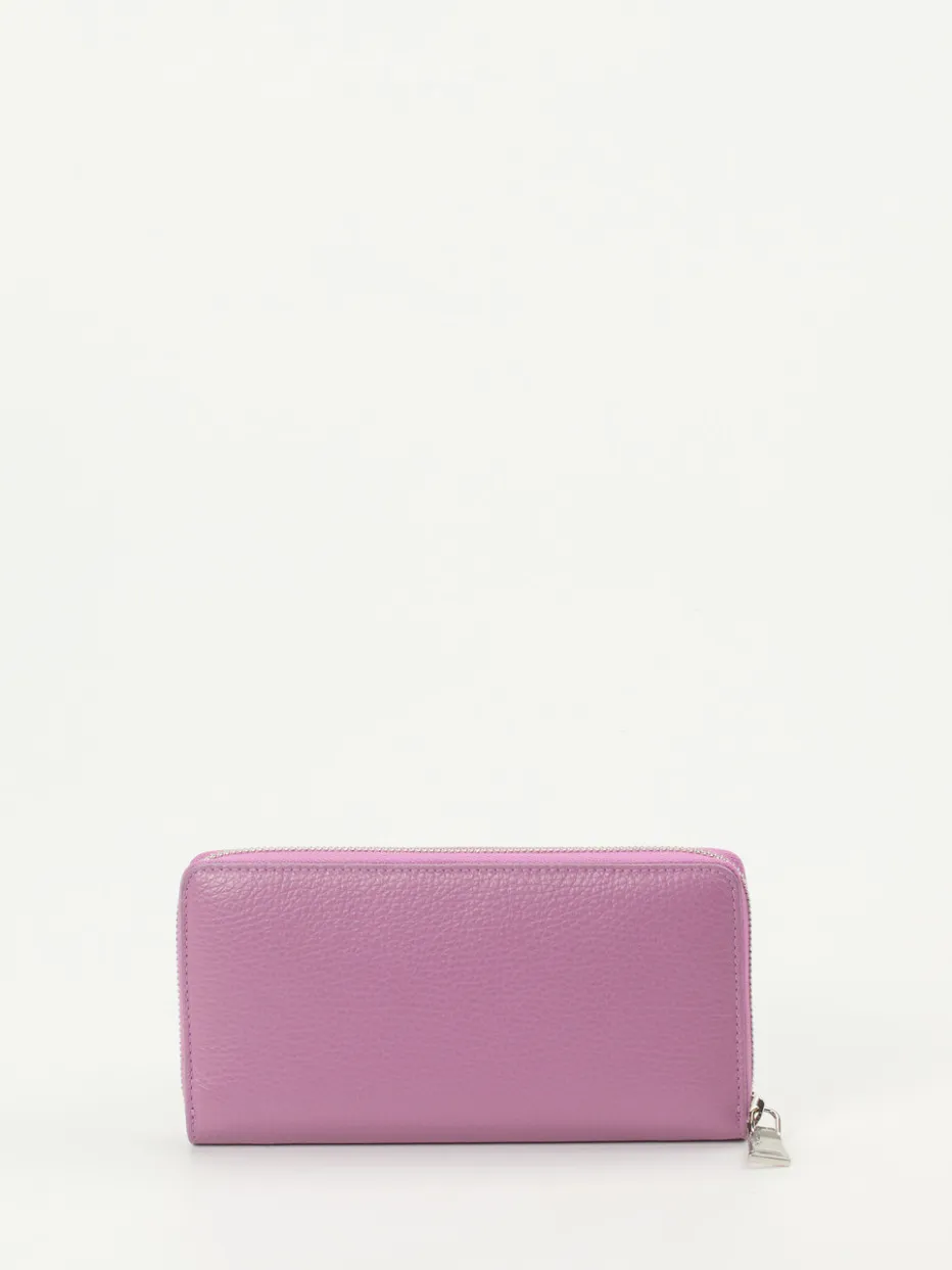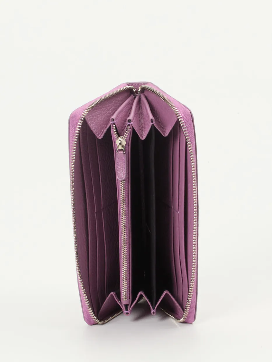 Die Geldbörse überzeugt mit strukturiertem Kalbleder in zartem Flieder und durchdachter Innenaufteilung – ein stilvolles Accessoire für Alltag und Büro.