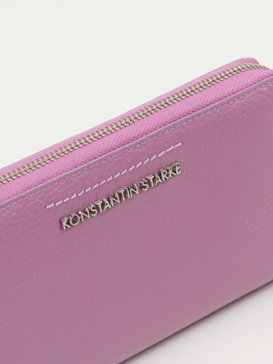 Die stilvolle, schlichte Optik und die leichte Prägung des fliederfarbenen, weichen Kalbleders zeichnen das attraktive Design dieses Portemonnaies der Marke Konstantin Starke aus. Das silberfarbene Markenwording und der silberfarbene Reißverschluss setzen harmonische Akzente. Karten, Bargeld und Belege können dank der überlegten Aufteilung sicher und praktisch verstaut werden. – Material: Kalbleder – Farbe: flieder – Größe: ca. 10 x 19 x 2 cm (H x B x T) – Innen: acht Kartenfächer, zwei Geldscheinfächer, ein Steckfach, ein Fach mit Reißverschluss – Verschlussart: Reißverschluss