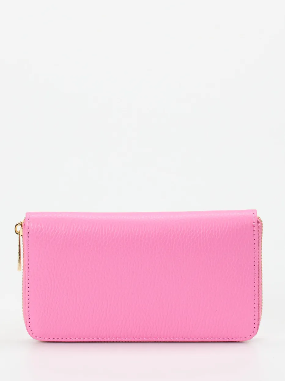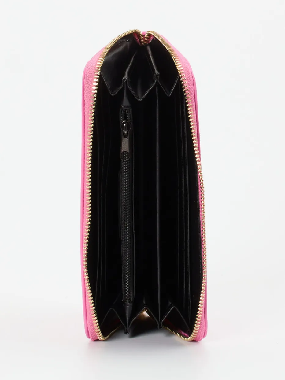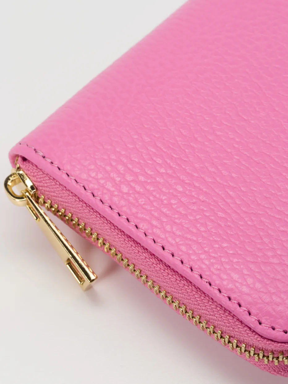 Das fein genarbte Kalbleder in kräftigem Pink zeigt charakterstarken Minimalismus mit trendigem Akzent. Die durchdachte Innenaufteilung verbindet Funktionalität mit Stil.