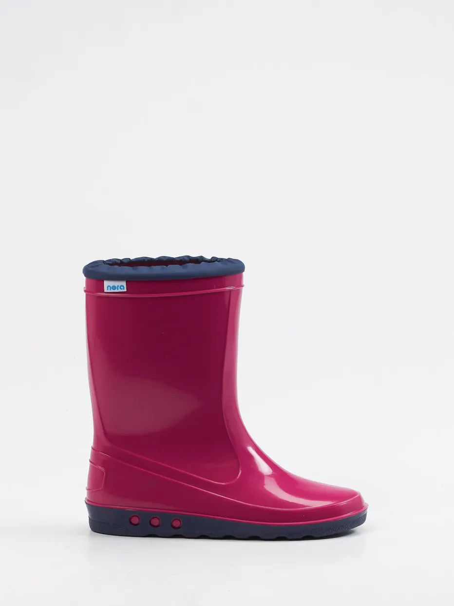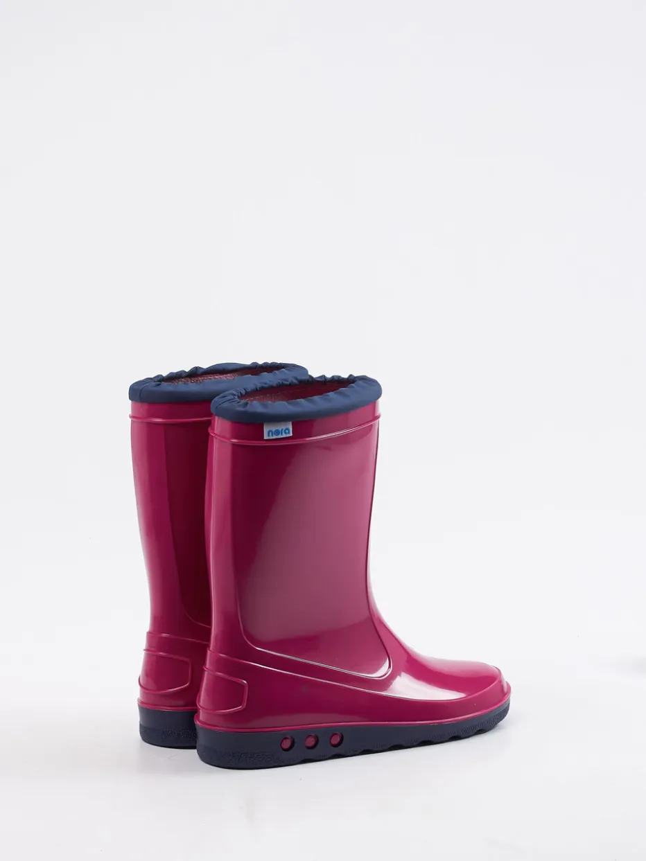 Gut gerüstet für nasse Abenteuer.Die Marke Nora präsentiert mit diesem Gummistiefel einen funktional gestalteten Kinderschuh für Regentage. Für Spielplatz, Schulweg oder Waldspaziergang bietet das wasserabweisende, flexible Synthetikmaterial zuverlässigen Schutz. Glänzend veredelt in Beerenpink mit dunkelblauem Schaftabschluss steht der Stiefel ganz im Zeichen von Color-Blocking und kindgerechtem Utilitywear-Stil. Die profilierte Gummisohle sichert festen Tritt, während das gepolsterte Textilfutter und der Schlupfeinstieg mit elastischem Bündchen den Tragekomfort erhöhen. Ideal kombinierbar mit Regenjacke oder Matschhose. Ein langlebiger Begleiter mit bewährtem Nora-Komfort und alltagstauglichem Design.