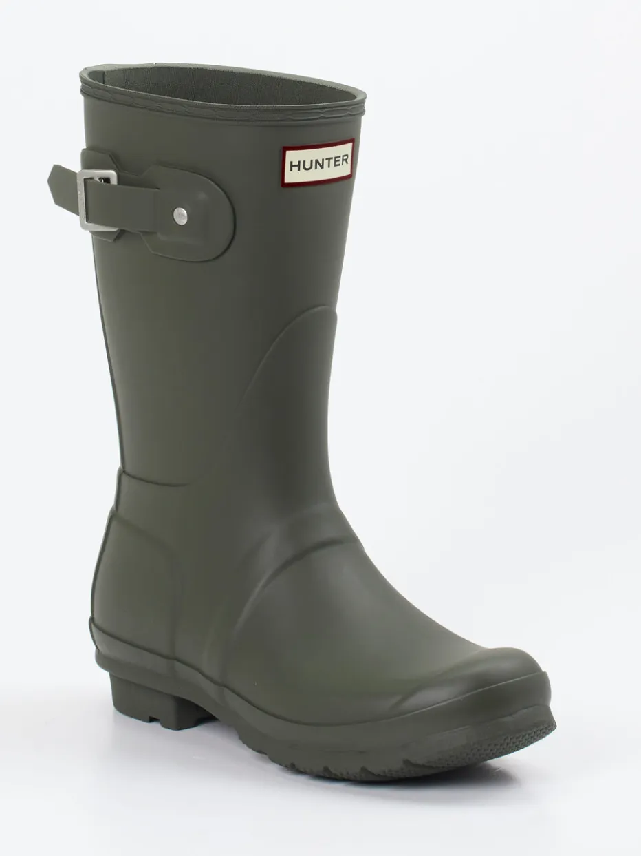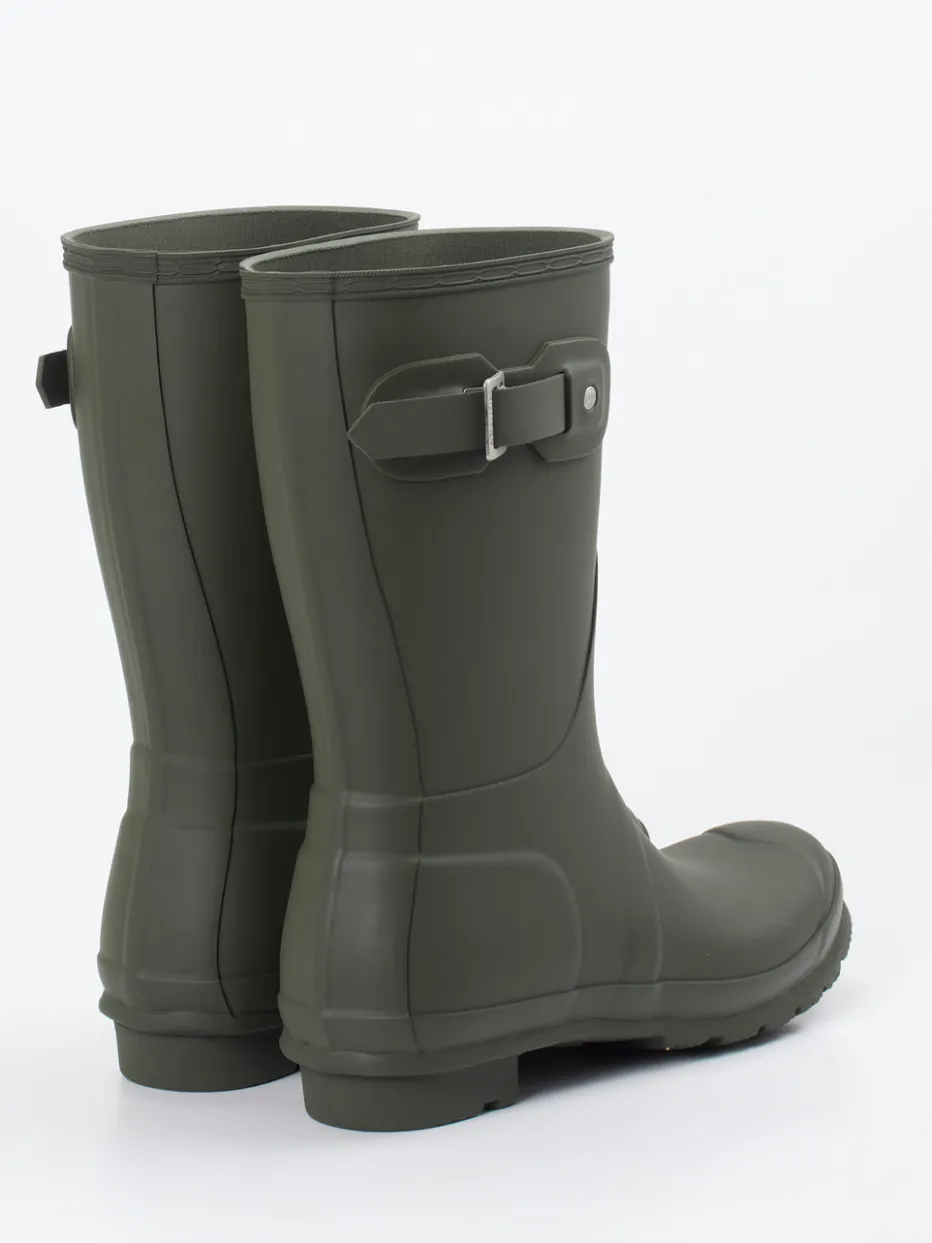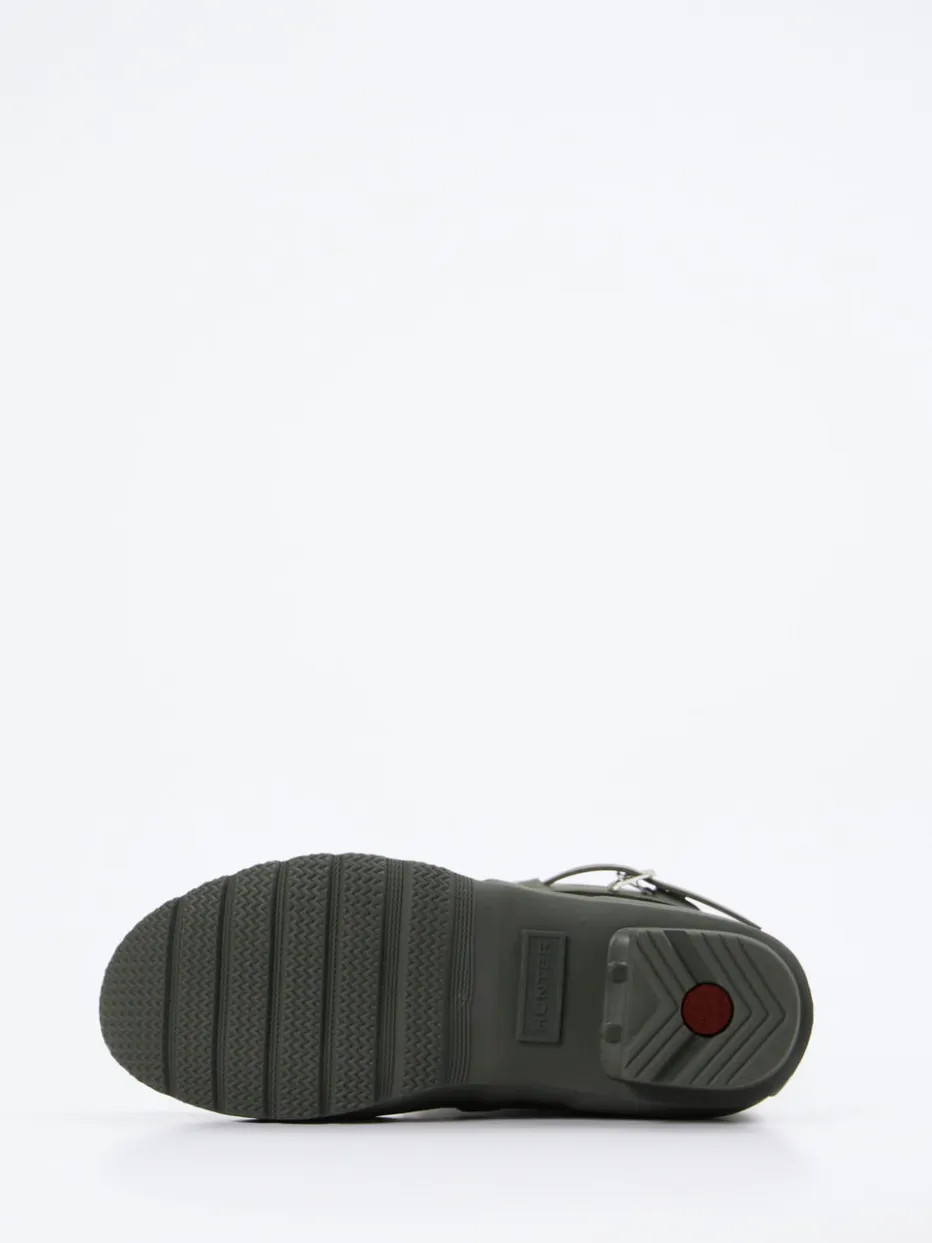 Stil und Funktion bei jedem Wetter.Die Marke Hunter zeigt mit diesen halbhohen Gummistiefeln ihre Expertise für wetterfeste Footwear. Ob beim Spaziergang im Regen oder auf dem Wochenmarkt – der Stiefel aus wasserfestem Synthetikmaterial mit matter Oberfläche bietet zuverlässigen Schutz. Das olivgrüne Design, die gerade Schaftform und die seitliche Schnalle mit Metallelement verschmelzen zu einem reduzierten, modernen Look. Profilsohle und weich gepolstertes Fußbett sorgen für sicheren Tritt und Komfort. Der Stil greift Gorpcore-Trends auf und passt mühelos zu Jacken im Utility-Look. Robuster Favorit mit modischem Update – wetterfest von Kopf bis Fuß.