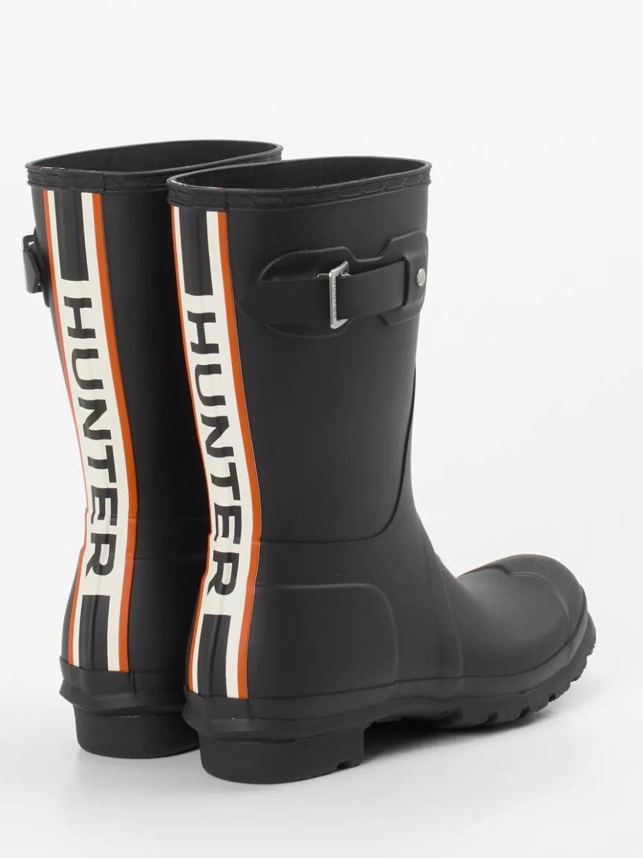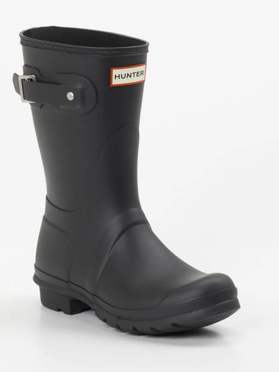 Wetterbeständige Gummistiefel von Hunter verbinden Utilitywear-Charme mit modischem Minimalismus. Die griffige Profilsohle sorgt für Halt, das mattschwarze Finish unterstreicht den urbanen Look.