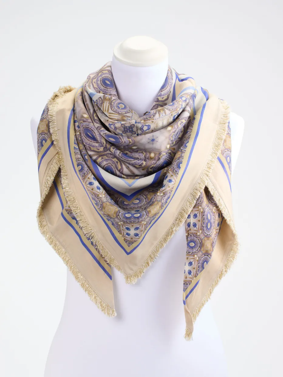 Mit edlem Glanz und opulentem Ornamentprint überzeugt dieses quadratische Tuch durch seine stilvolle Anmutung und vielseitige Kombinierbarkeit in Business und Freizeit.