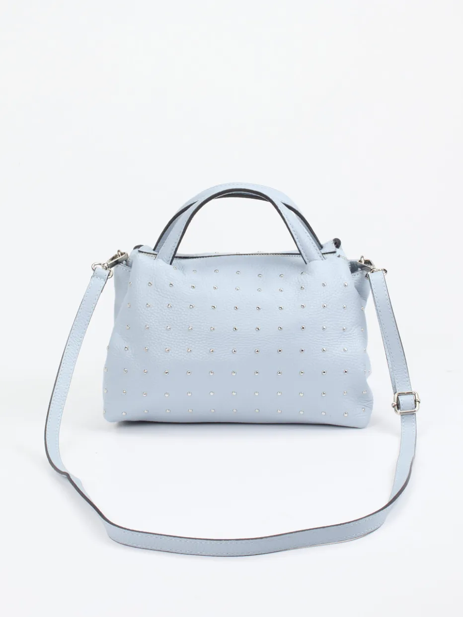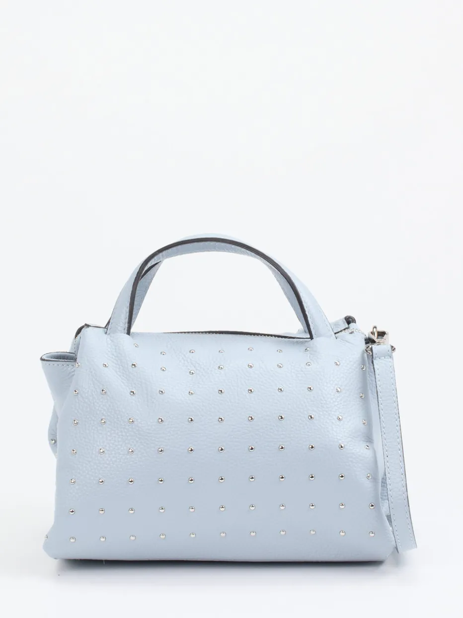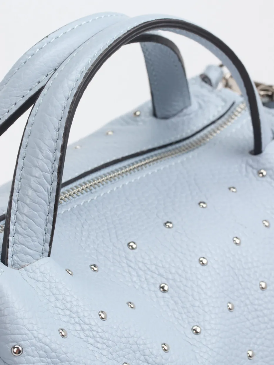 Die genarbte Kalblederstruktur trifft auf silberfarbene Nietenakzente und eine klare Formensprache – stilvoll und funktional zugleich.