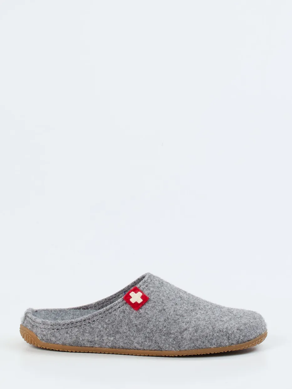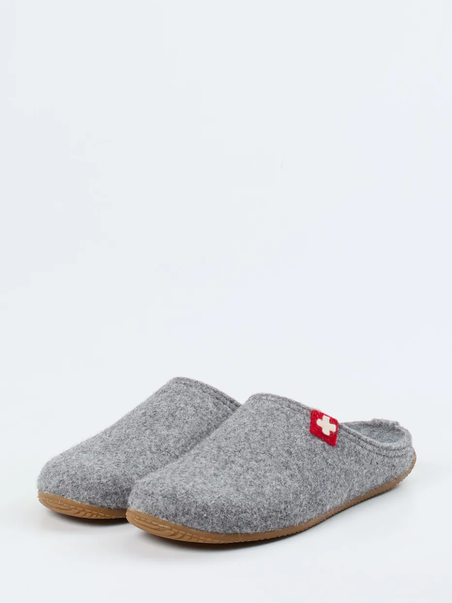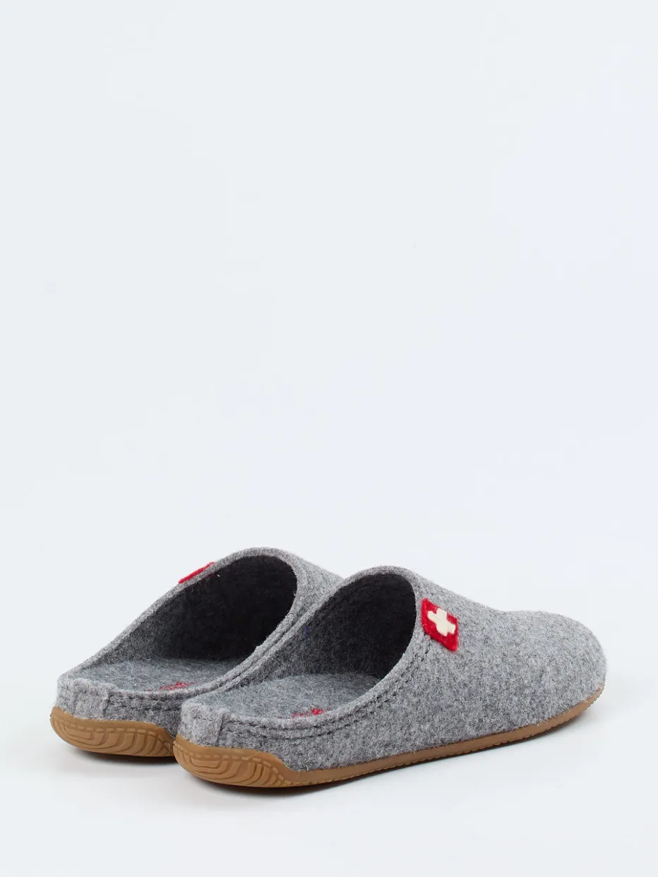 Diese Hauspantolette vereint alpinen Charme mit funktionalem Komfort – gefilzte Schurwolle sorgt für wohlige Wärme, während die profilierte Gummisohle sicheren Halt gewährleistet.