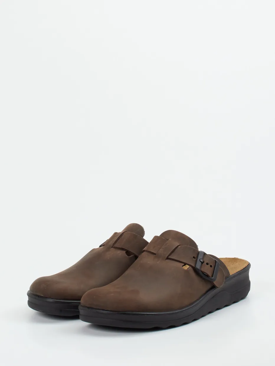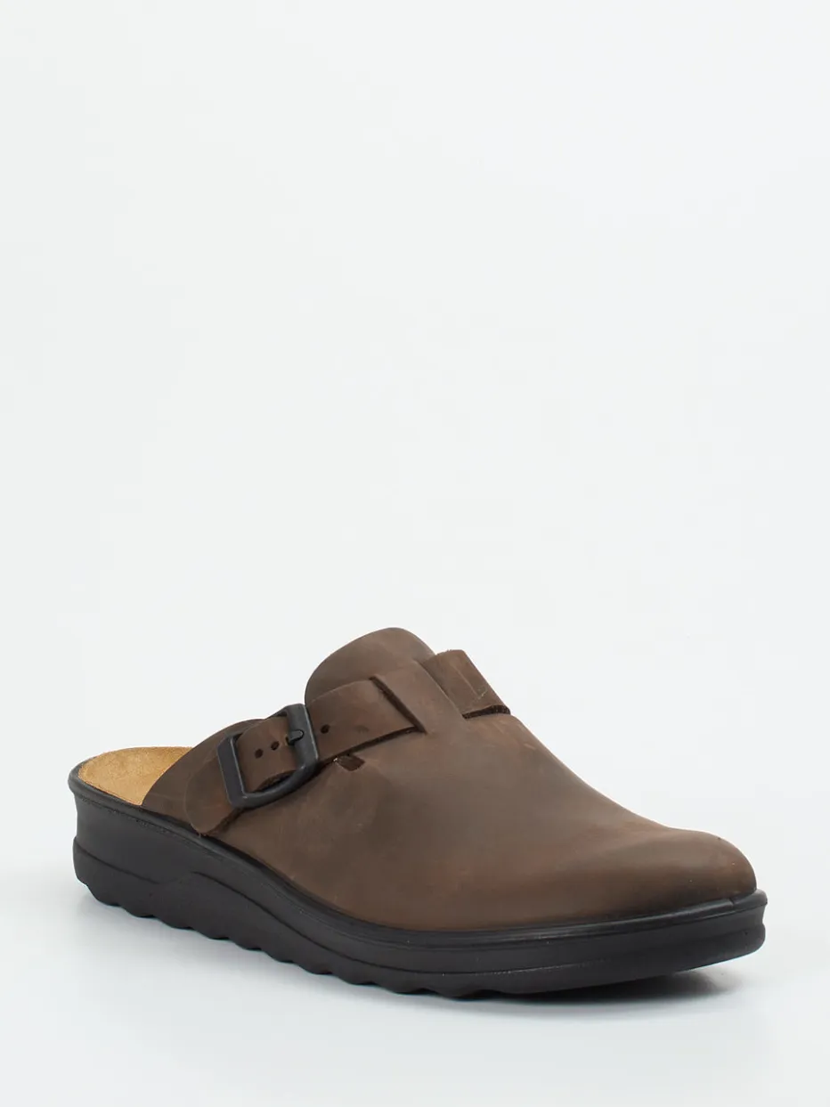 Wohnkomfort trifft minimalistisches Design.Westland präsentiert mit diesem Hausschuh ein hochwertiges Modell für entspannte Stunden daheim. Das dunkelbraune Nubukleder zeigt sich samtig angeschliffen und angenehm matt verarbeitet. Mit geschlossener Frontpartie und offenem Fersenbereich bietet die Silhouette natürlichen Komfort, unterstützt durch ein ergonomisch geformtes, lederbezogenes Fußbett. Die dunkle PU-Sohle mit dezentem Profil sorgt für Trittsicherheit auf glatten Böden. Eine seitliche Metallschnalle ermöglicht individuelle Anpassung. Inspiriert von „Quiet Luxury“ und Comfortwear eignet sich das Modell besonders für stilbewusste Relax-Momente. Dazu passen legere Loungewear oder Wollsocken. Ein Hausschuh mit zeitloser Ästhetik und spürbarer Qualität.