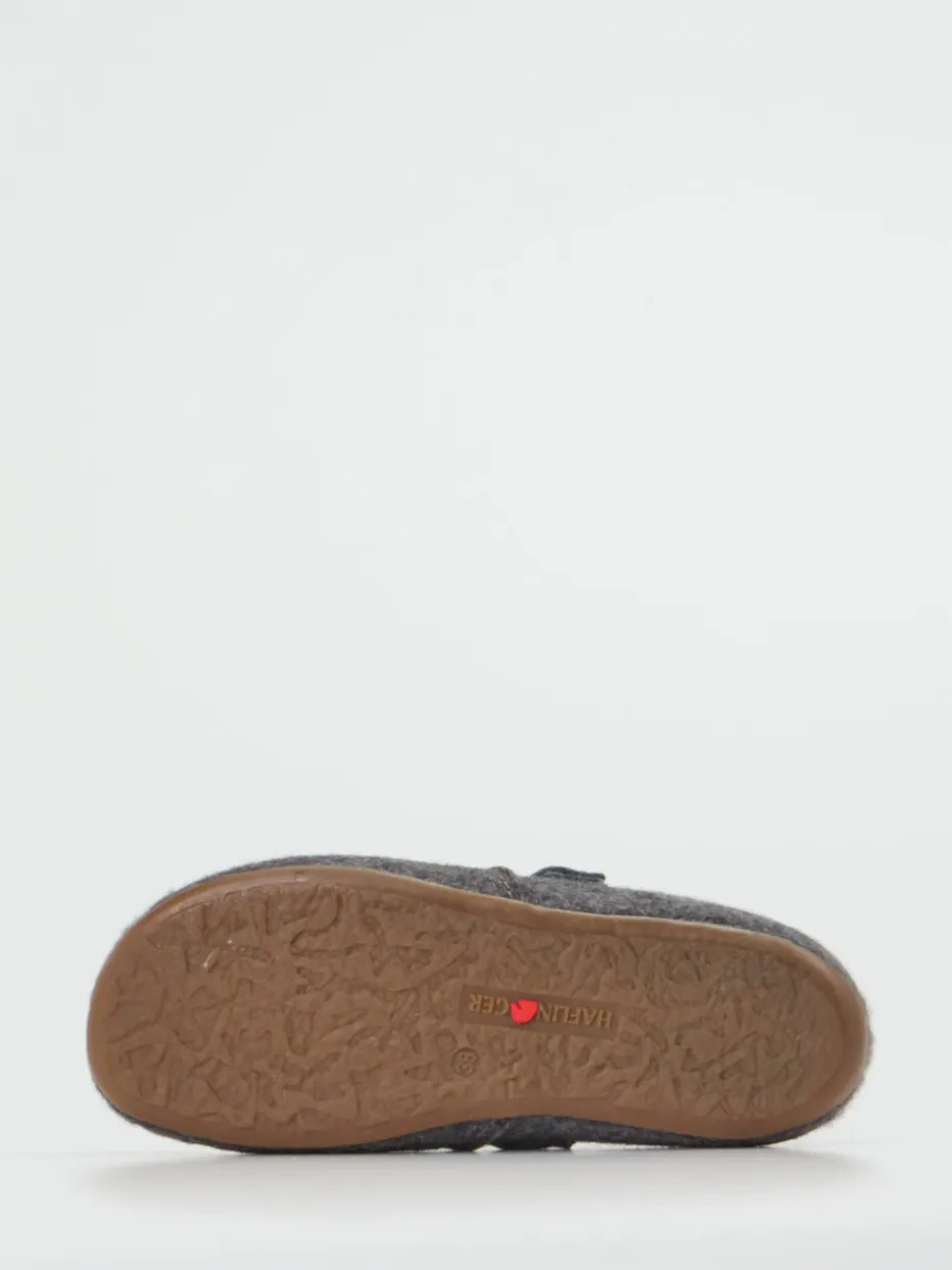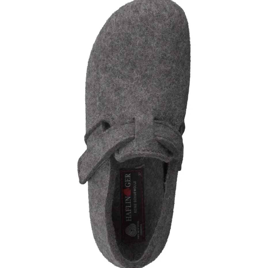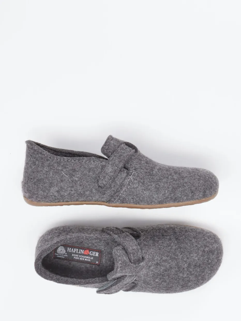 Schlicht. Warm. Wohnlich. Haflinger bietet mit diesem geschlossenen Hausschuh eine gemütliche Lösung für Anspruch und Alltag. Ideal für kalte Böden und lange Morgen vereint das Modell graue, filzige Schurwolle mit ergonomischem Komfort. Die flache Silhouette in Mittelgrau zeigt sich angenehm unauffällig, während der praktische Klettverschluss eine individuell regulierbare Passform ermöglicht. Ein goldfarbenes Markenlogo sowie der hochgezogene Rand runden das funktionale Design ab. Die rutschfeste Gummisohle verspricht sicheren Halt auf glatten Untergründen. Inspiriert von Loungewear und der „Slow Living Aesthetic“ fügt sich dieser Schuh harmonisch in natürliche Wohnkonzepte ein. Wertiger Komfort aus reiner Wolle mit entspannter Eleganz – typisch Haflinger.