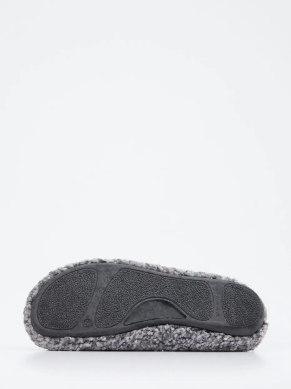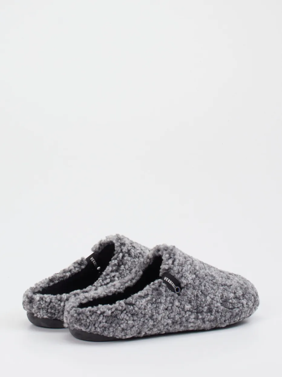 Modisches Loungewear-Essential für kalte Tage.Verbenas präsentiert einen Hausschuh in bequemer Schlupfform mit modischer Silhouette. Das Modell richtet sich an komfortorientierte Träger:innen und überzeugt mit kuscheligem Teddyfleece in Mittelgrau, kombiniert mit weichem Textilfutter im Inneren. Die rutschfeste Gummisohle sorgt für sicheren Stand auf glatten Böden, während die geschlossene Vorderpartie und die offene Ferse den klassischen Clog-Charakter betonen. Der Look bleibt bewusst reduziert – perfekt im Einklang mit dem „Coziness Core“-Trend. Dezente Ton-in-Ton-Optik und Labelpatch runden das Bild ab. Verlässlicher Wohlfühlschuh mit typischer Verbenas-Gemütlichkeit.