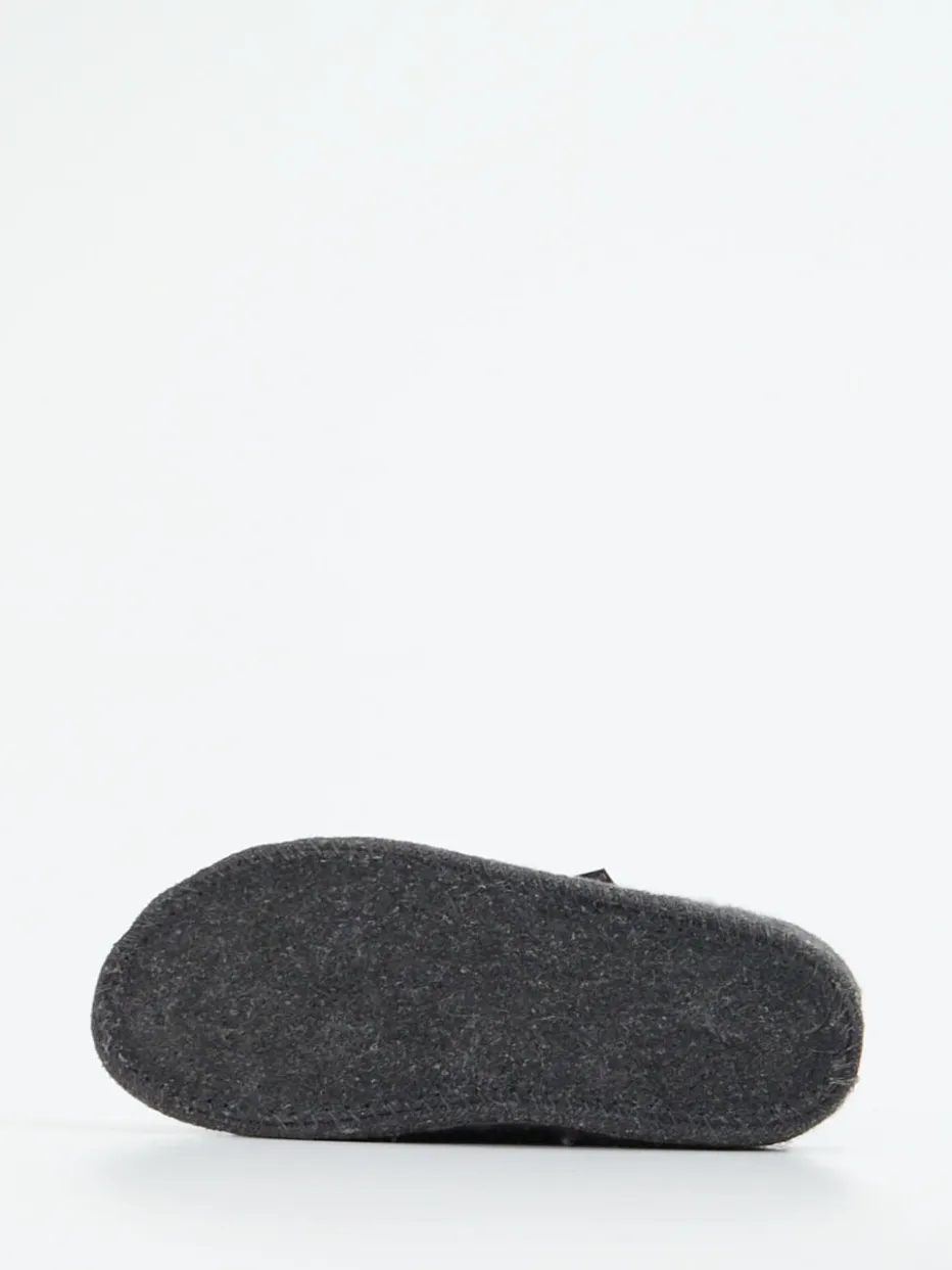 Der hochwertige Wollfilz in Naturqualität bietet ein ausgeglichenes Fußklima – ideal für entspannte Momente im Wohnbereich. Dezentes Design mit herzförmigem Zieremblem als feinem Akzent.